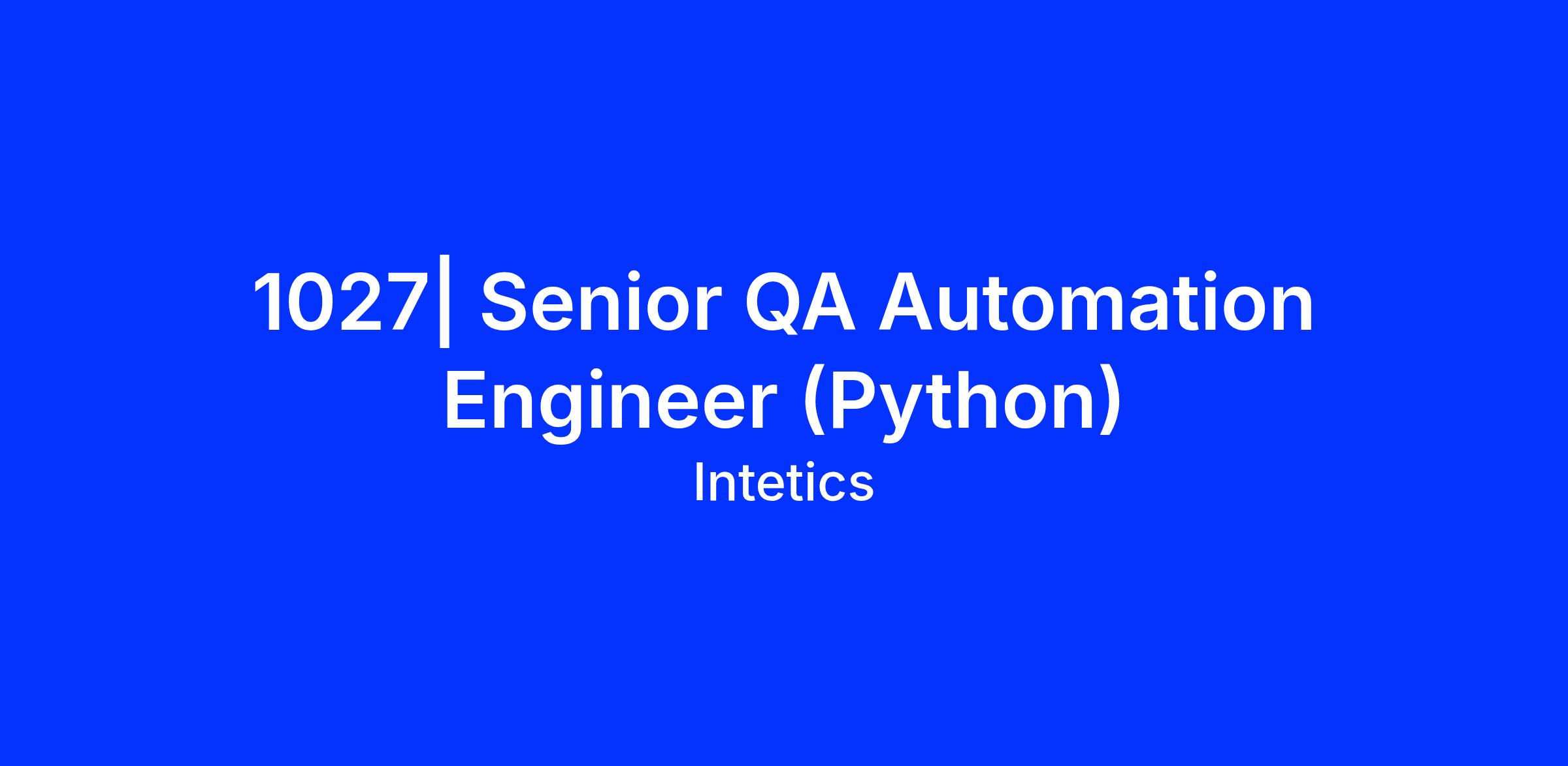 DescriptionIntetics Inc., a leading American technology company specializing in custom software application development, distributed professional teams creation, software product quality assessment, and allβthingsβdigital solutions, is seeking a Senior QA Automation Engineer (Python) to join our team and ensure highβquality automated testing for mobile applications.