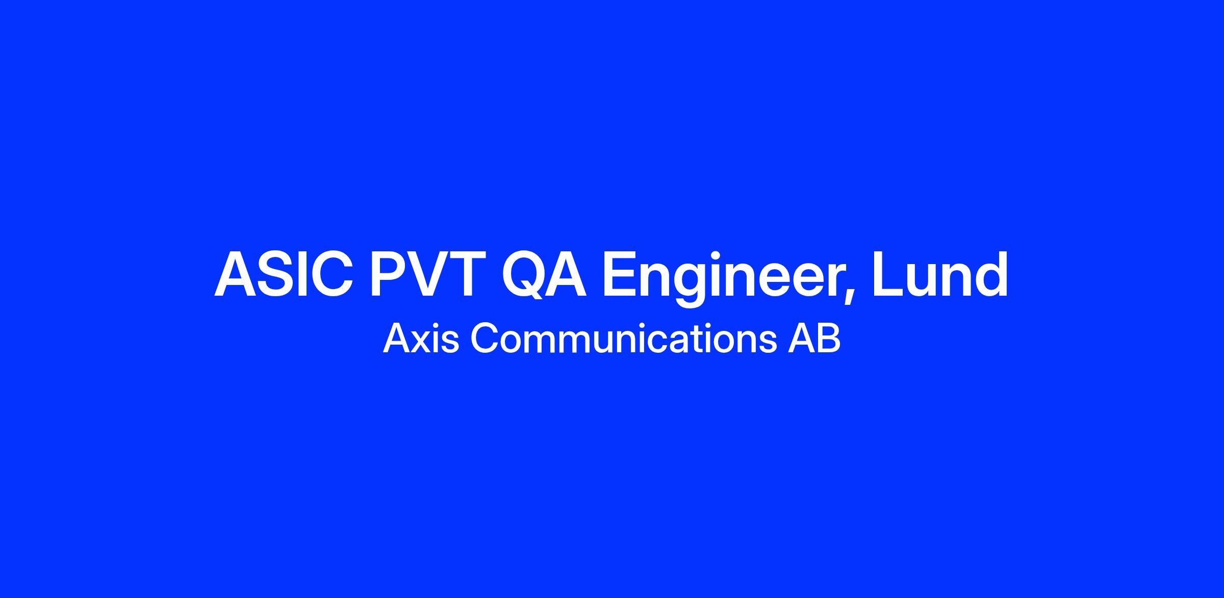 Are you an engineer who thrives on being the technical hub, while also loving to work hands-on in the lab? At Axis Communications, we develop the advanced chips that are the brain of our smart products. We are now looking for someone to take on a coordinating role and drive our PVT testing from start to finish.