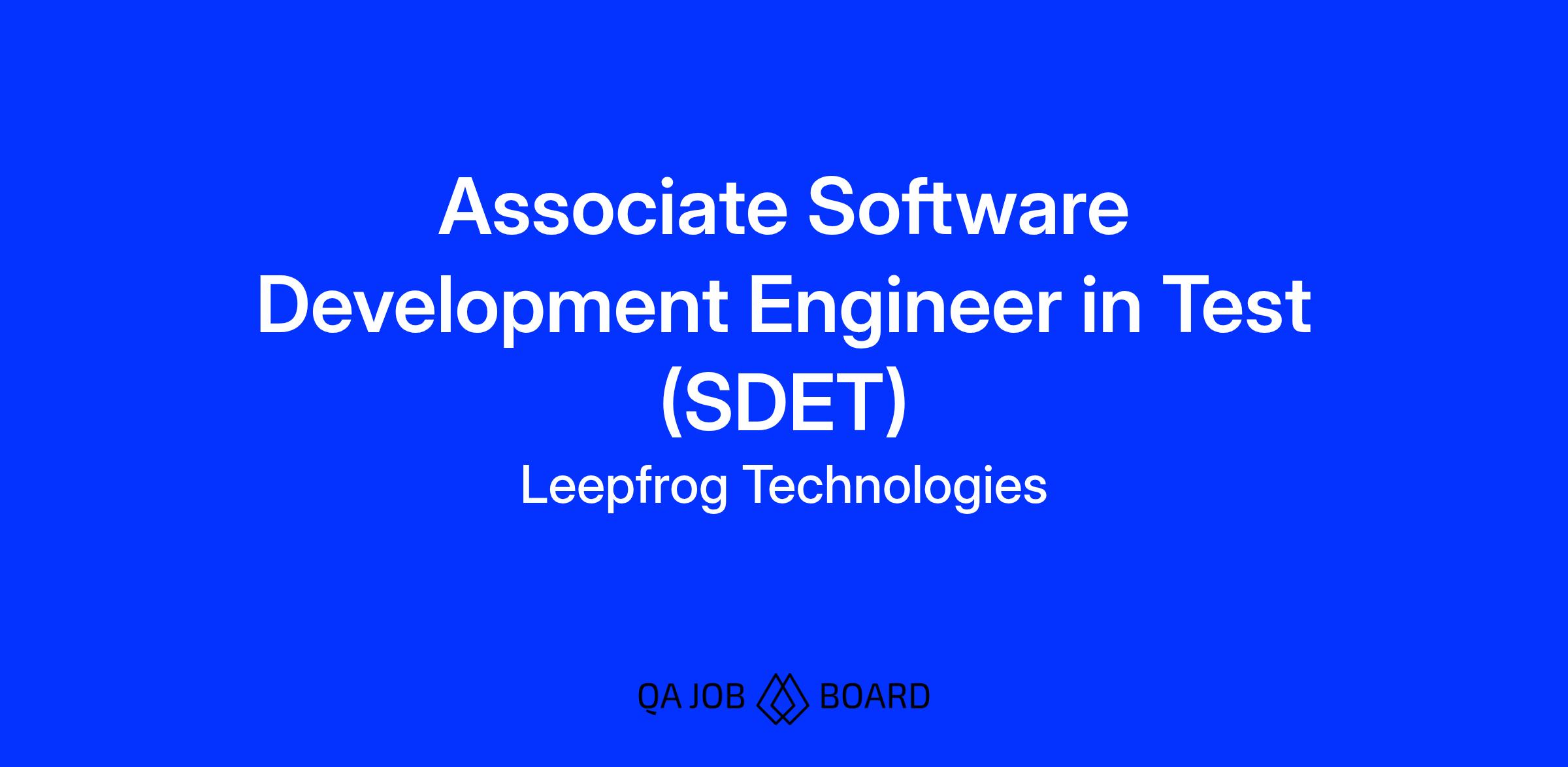 Position Title: Associate Software Development Engineer in Test (SDET)