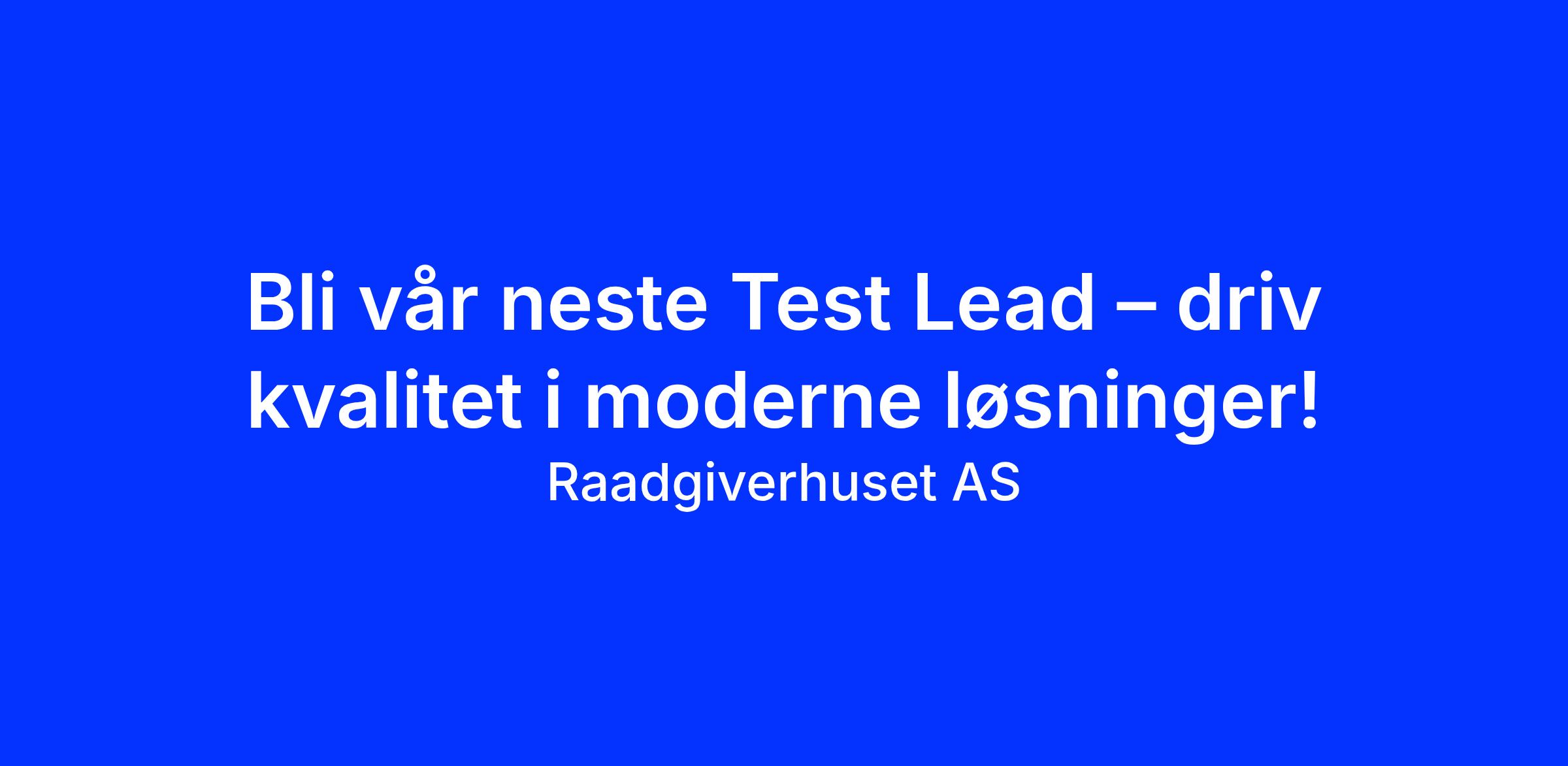 På vegne av kunde søker vi nå en dyktig og engasjert Test Lead med sterk faglig tyngde innen testledelse og kvalitetssikring. Dette er en spennende mulighet for deg som ønsker å ta eierskap til kvalitet i komplekse og moderne teknologilandskap.