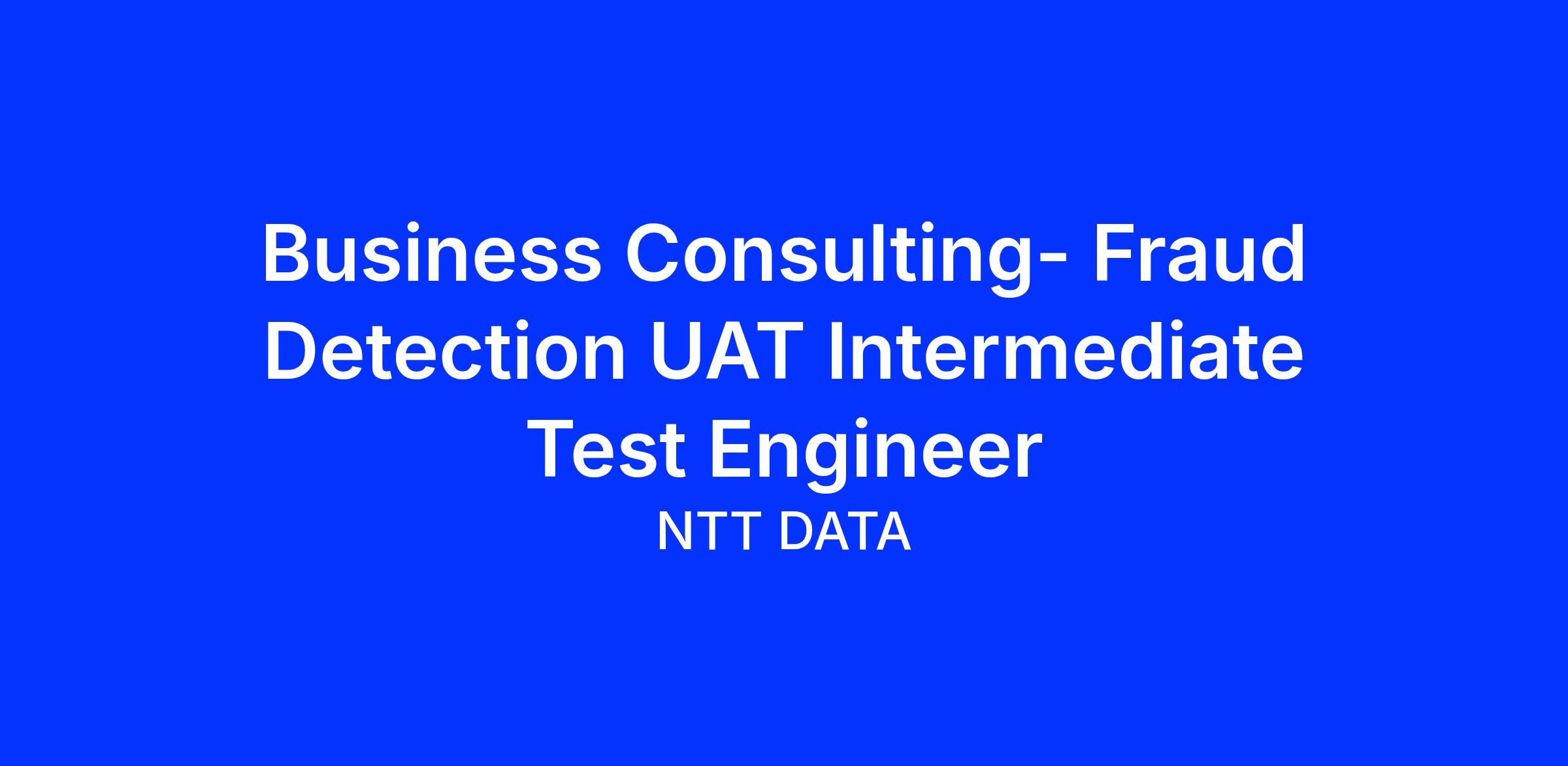 We are currently seeking a Business Consulting- Fraud Detection UAT Intermediate Test Engineer to join our team in Bangalore, KarnΔtaka (IN-KA), India (IN).