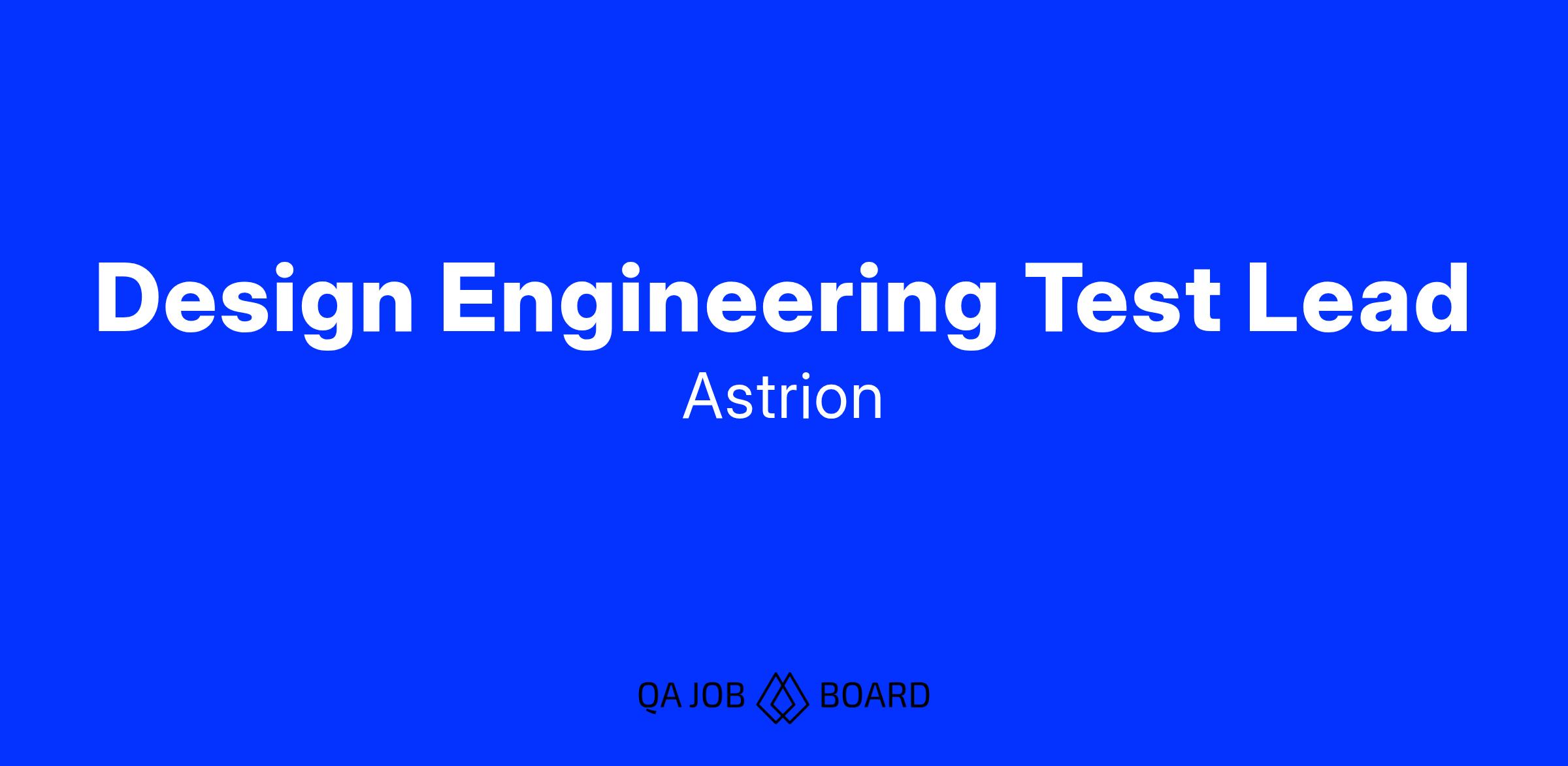 Job Title: Design Engineering Test Lead