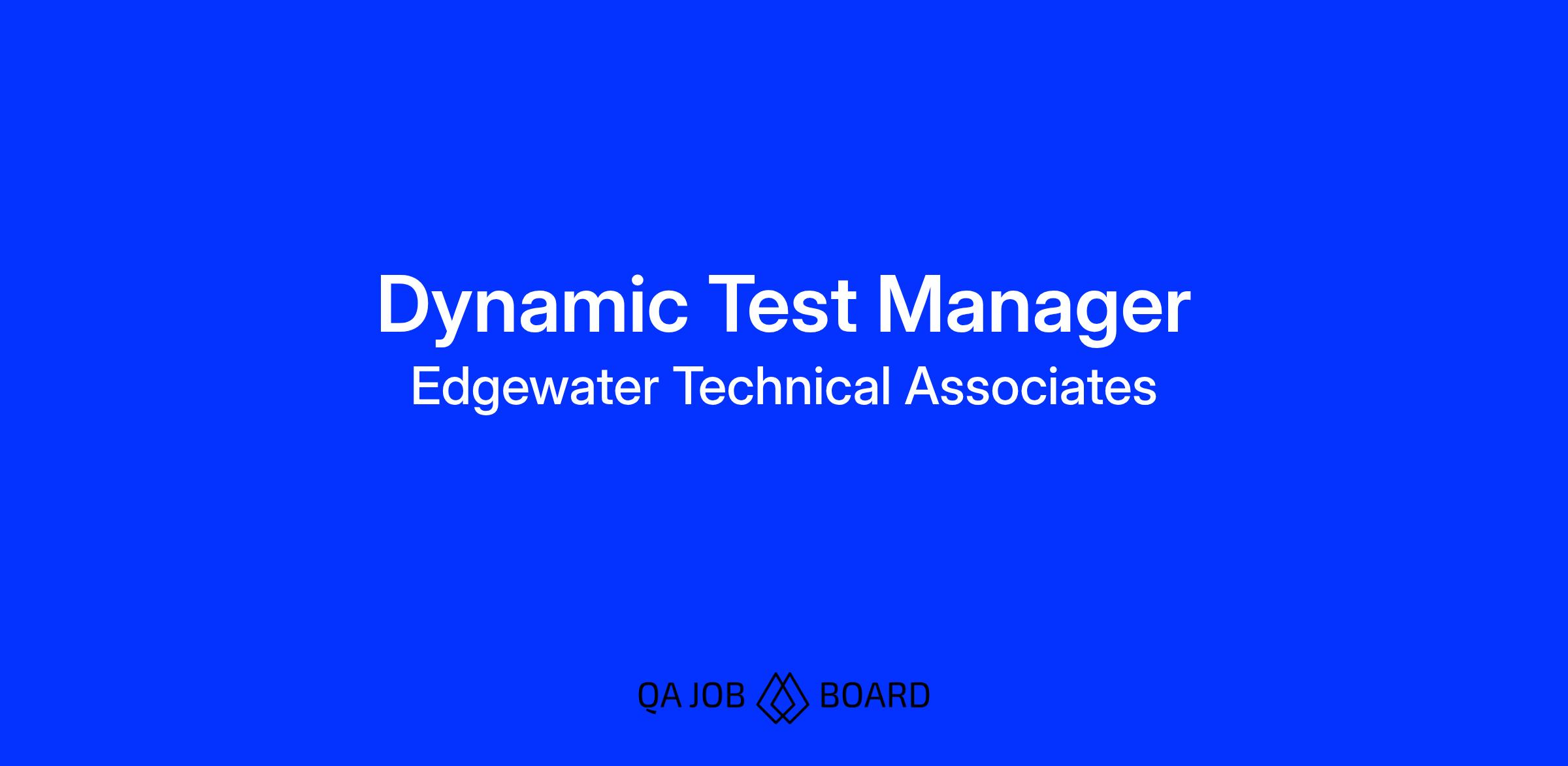 Edgewater Technical Associates is seeking qualified candidates for a Dynamic Test Manager opportunity in Oak Ridge, TN.