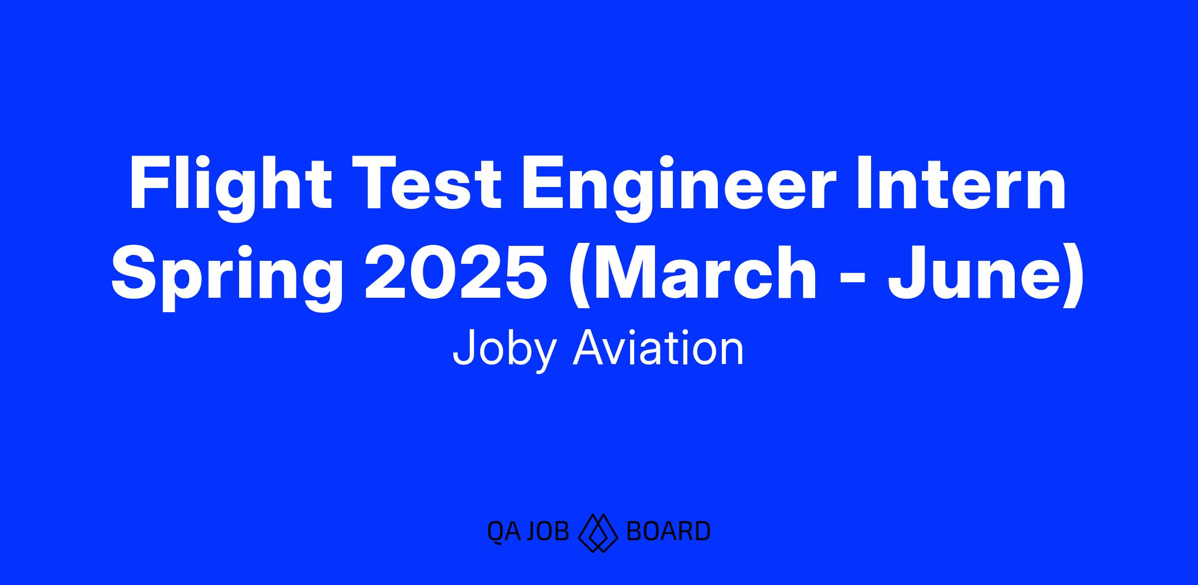 Joby Aviation is seeking passionate and driven interns to join our flight test team for the Spring of 2025 (roughly March - June, with some flexibility). This role requires a willingness to learn and develop a range of knowledge and skills that includes developing flight test plans and reports for experimental CTOL/VTOL fly-by-wire aircraft, executing testing in a ground control station environment, test data analysis, flight test simulator development, and all other tasks related to development and certification flight test activities. A can-do attitude is a must for this fast-paced environment in which every team member relies on each other to perform to their highest potential. The position is based at Jobyโs Marina facility, with travel to Edwards Airforce Base.