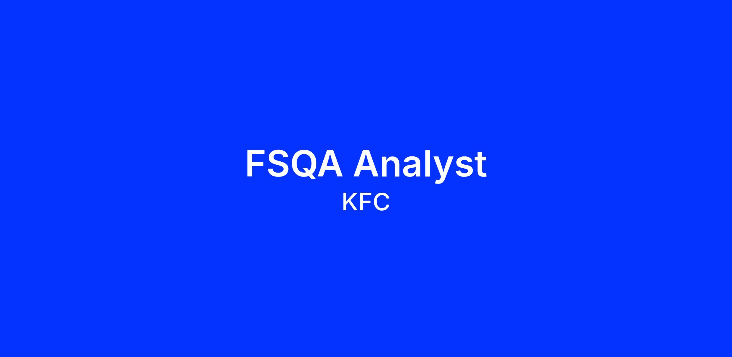 - Reports to KFC CEE FSQA Manager & Sustainability Lead. Works closely with KFC CEE and Yum! Supply chain teams, Ops, FIT, Marketing Managers. Regular interaction with franchisee QA teams, suppliers, distributors, and other Yum! Brands QA Teams (KFC Pan-Europe, Pizza Hut, Tacobell, Yum! Global FSQA).