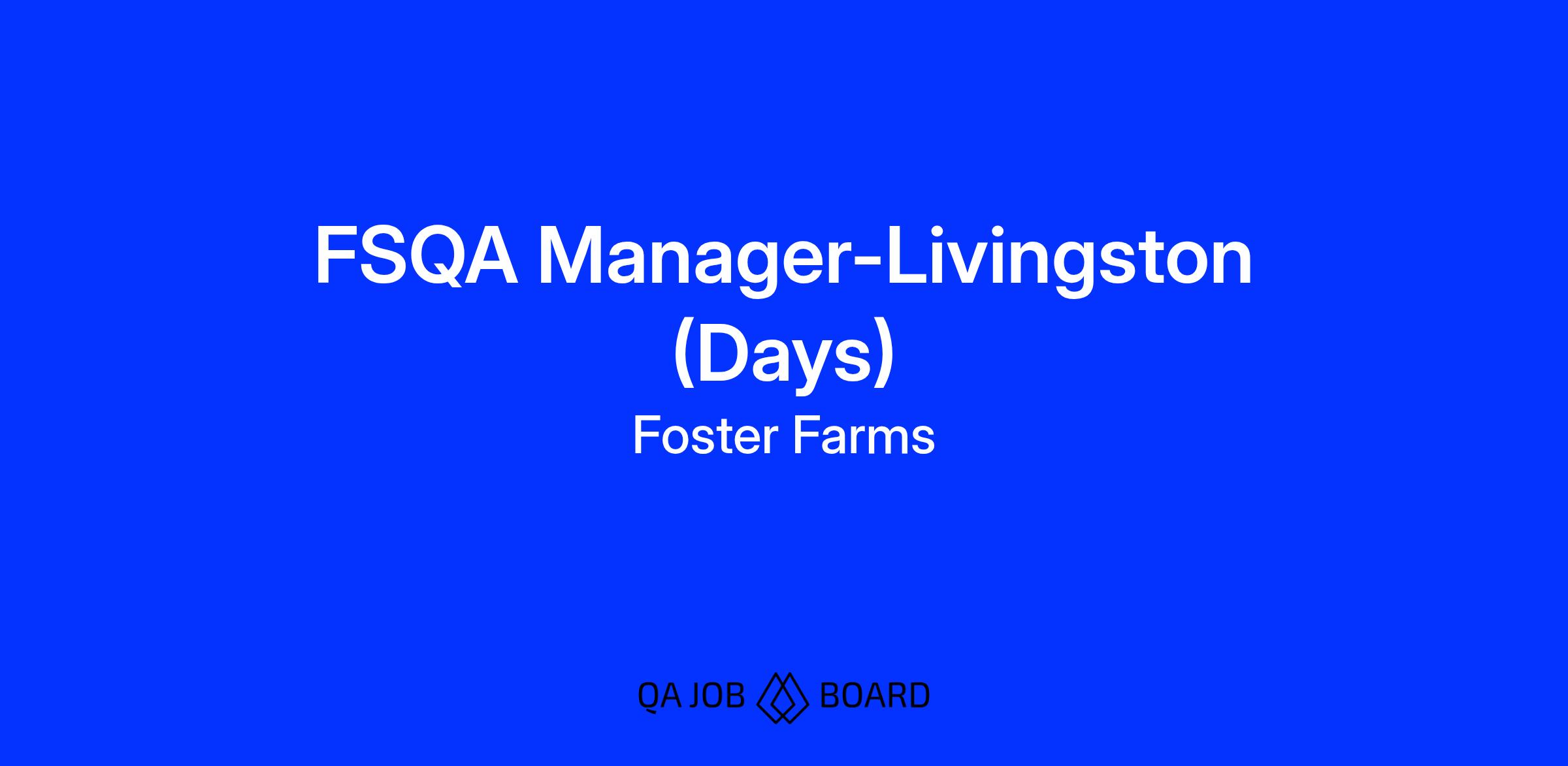 The FSQC manager works directly with processing plant operations shift manager and independently with limited oversight from FSQC manager to ensure compliance with Foster Farms, FSIS/USDA, and customer requirements on assigned shift. Directs, oversees, and implements the Food Safety and Product Quality (FSQC) programs for a specific Foster Farms food manufacturing site to ensure product safety, legality, and quality across multiple plant processes including first processing and second processing for both retail and food service operations. Responsible for the management and development of supervisory and/or hourly FSQC personnel to achieve departmental goals. This position is intended as developmental training for further FSQC Manager responsibilities. It involves tactical supervision of a large team of employees and FSQC programs, but also more strategic activities and independent decision-making than a Supervisor or Assistant Manager position. This position has the authority to release or retain product on hold for quality or regulatory concerns, thus sound judgment in rendering a product as wholesome or unwholesome is required.Â