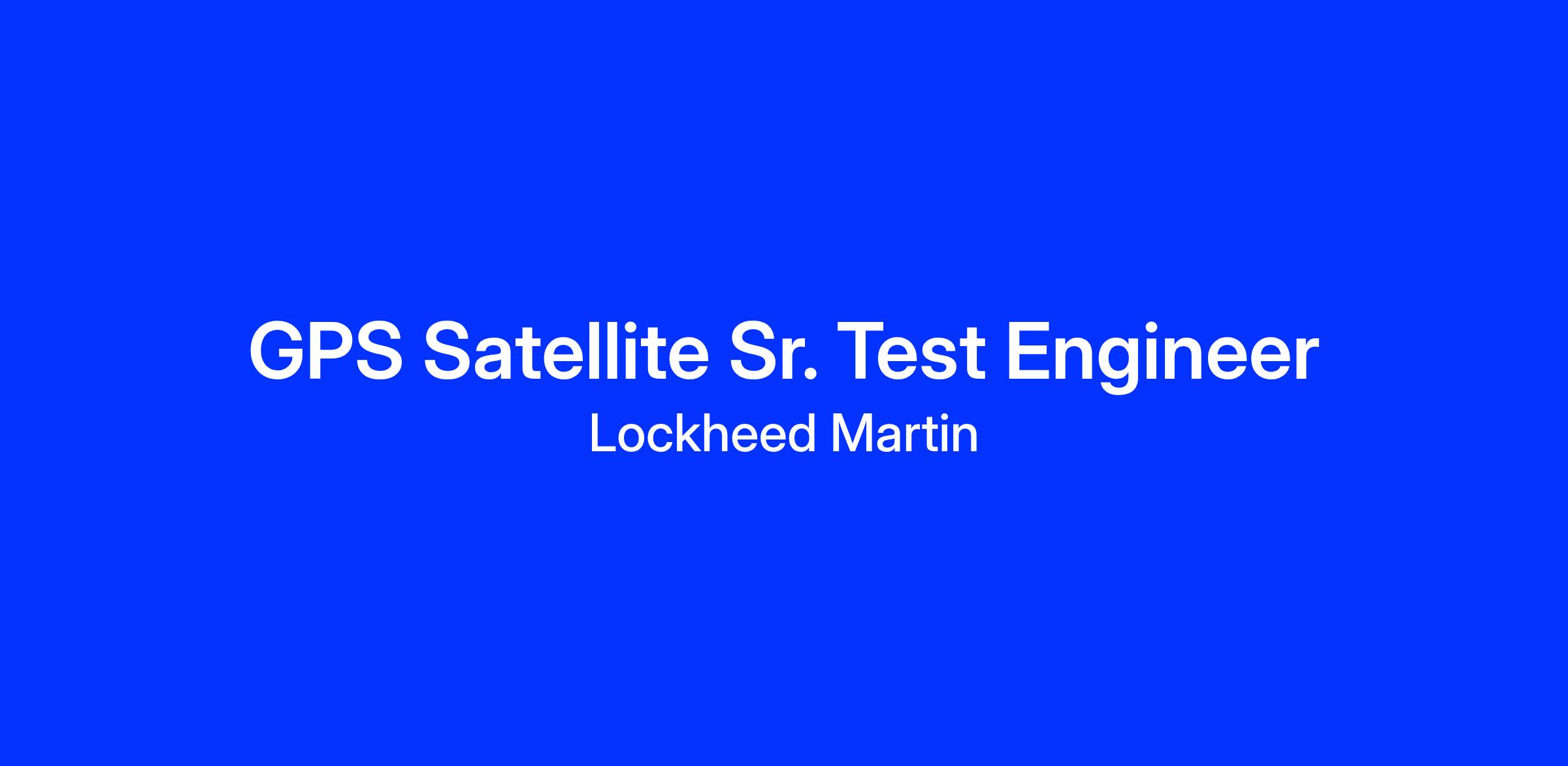 Lockheed Martin is seeking a Senior Level Electrical System Integration/Test Engineer to join the GPS integration and test team within Assembly, Test, and Launch Operations (ATLO). In this role you will participate in the planning/execution of electrical floor operations and will be responsible for developing automated test scripts, procedures, and other documentation needed to conduct spacecraft testing at both the factory and the launch site.