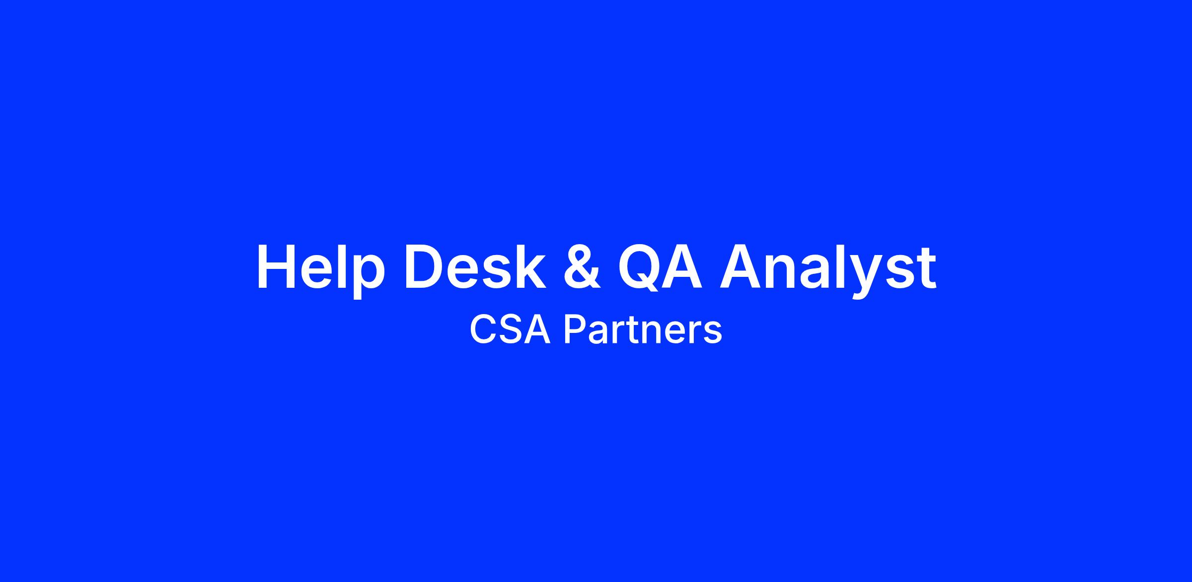 CSA Partners is hiring a hands-on Help Desk & QA Analyst to support two internal technology platforms:ย