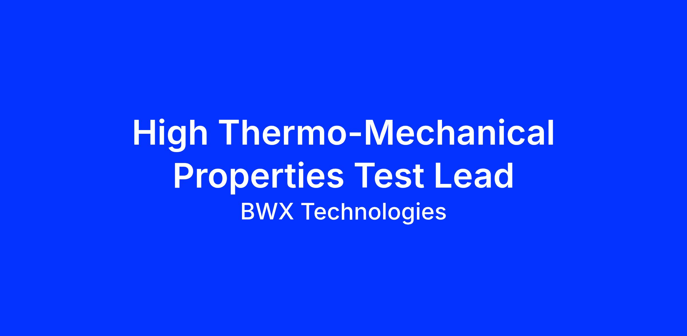 As our High Temp Thermo-Mechanical Properties Test Lead, you will be part of a team assisting multiple nuclear development projects in Lynchburg, VA. The individual will be responsible for defining standard test methodologies, performing materials testing, and mentoring peers; while supporting a wide variety of programs for space, defense, and commercial customers.