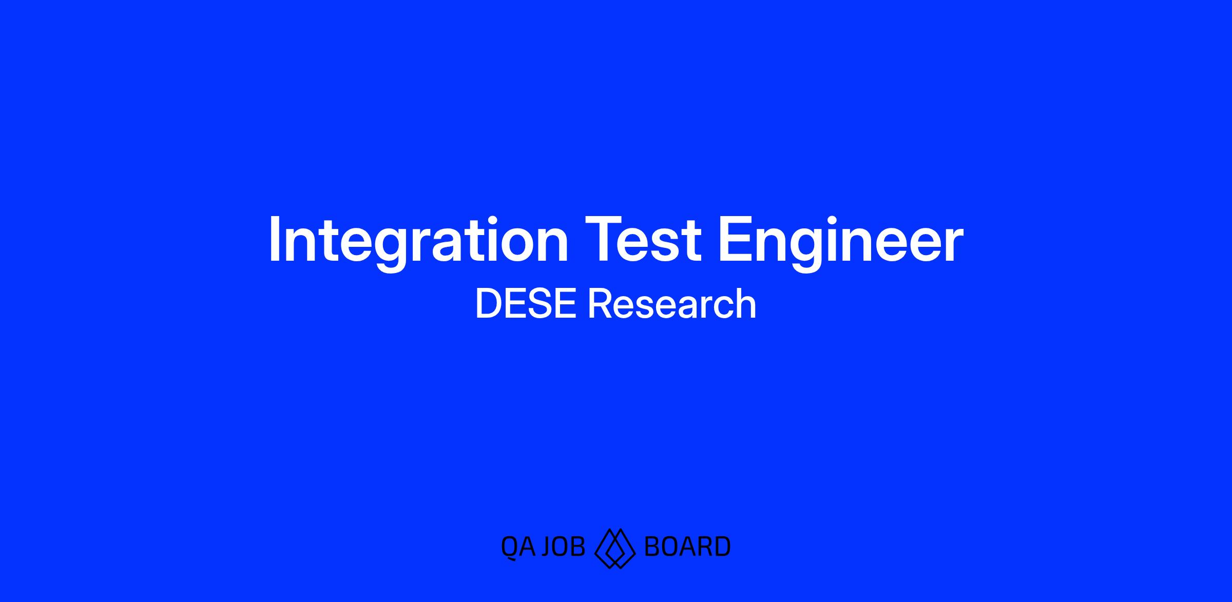DESE Research, Inc. is seeking qualified candidates to fill an Integration Test Engineer position. If you feel like you have the skills and qualifications for this job, please apply now!