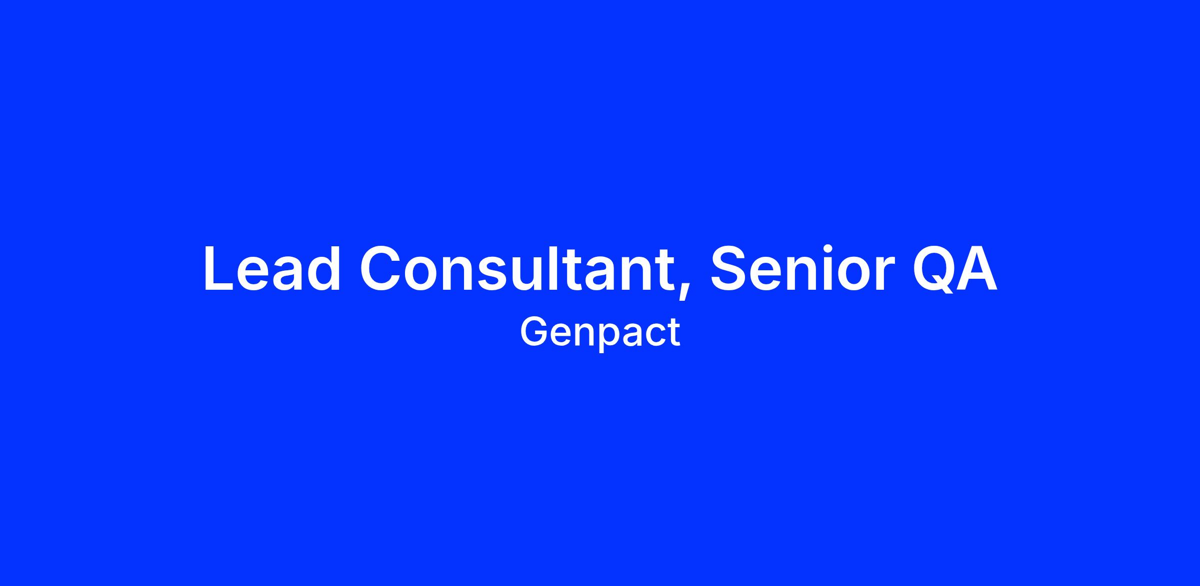 Inviting applications for the role of Lead Consultant, Senior QA