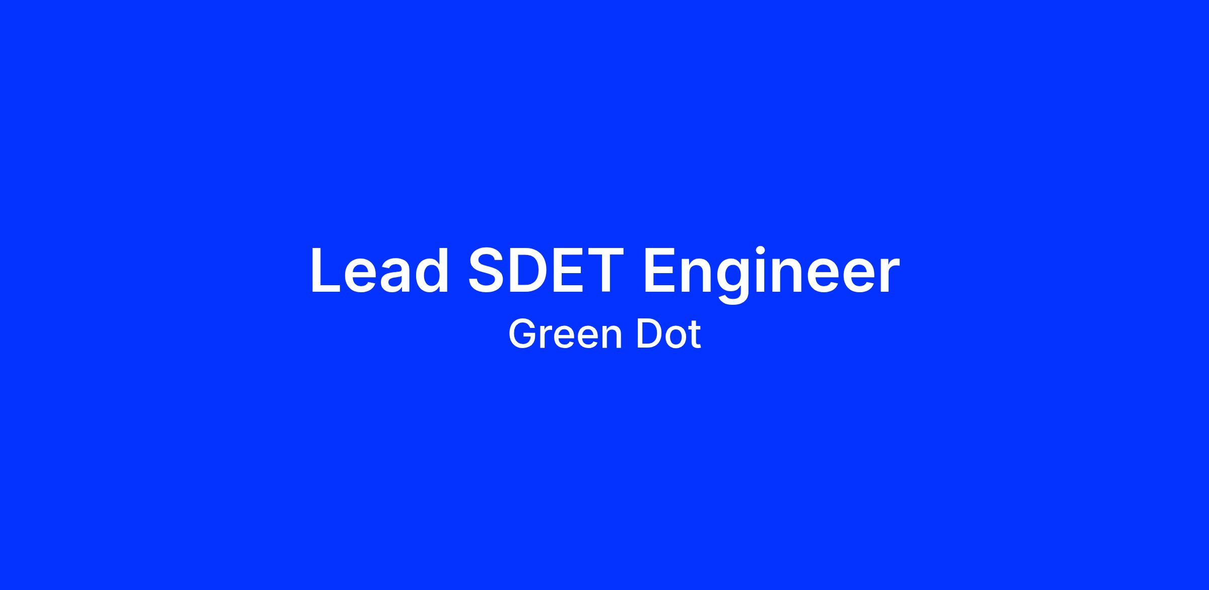 Green Dot Corporation is seeking a for a Lead SDET Engineer.