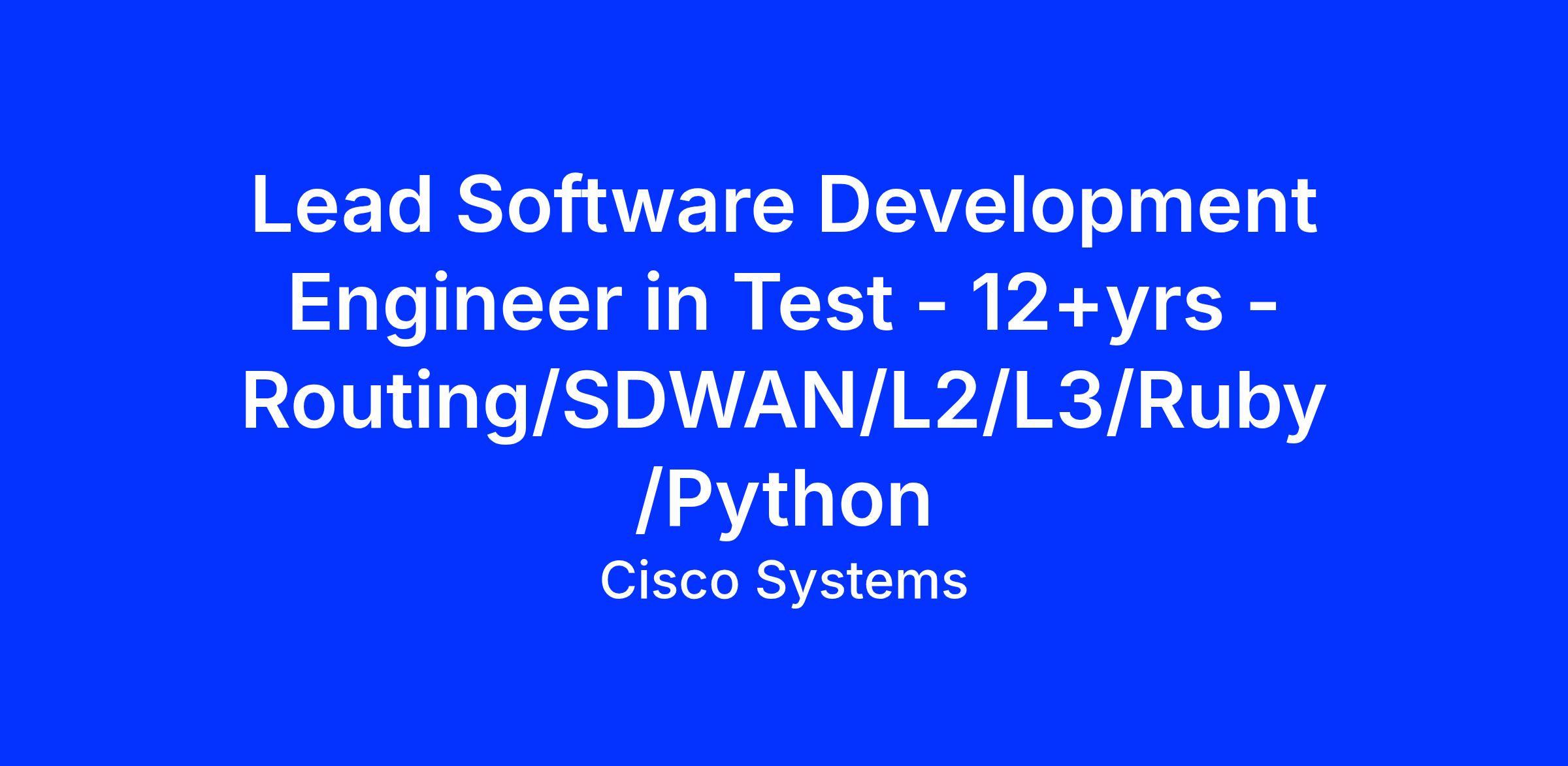 12+ years of experience in Testing routing or SD-WAN domain with at least 8+ years of Automation/Development experience.