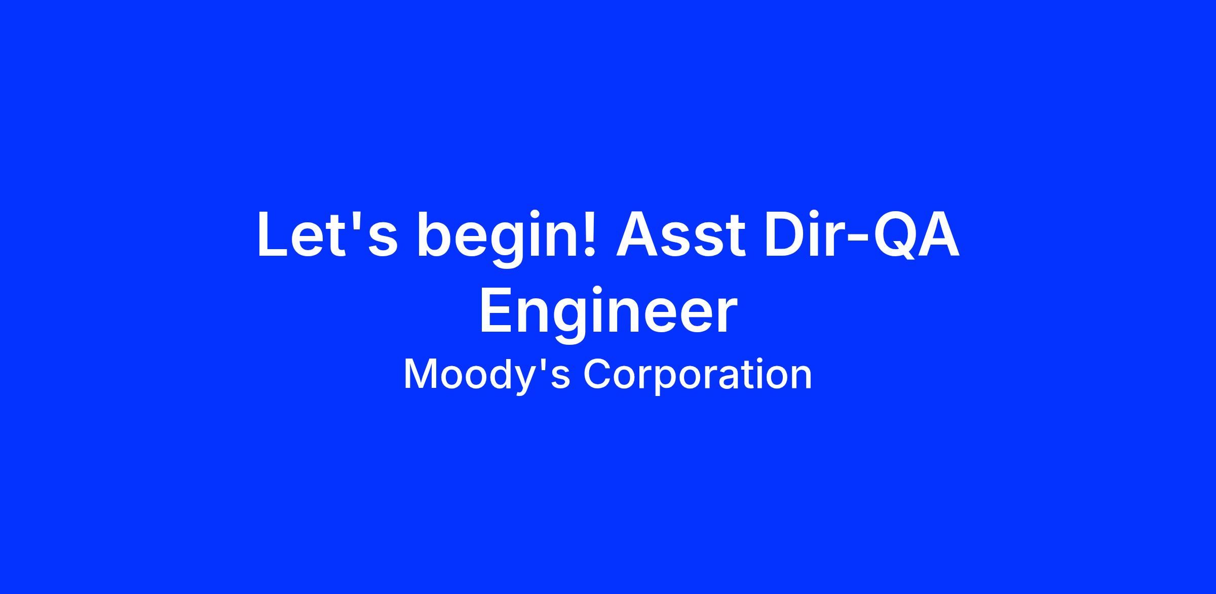 Candidates for Moody's Corporation may be asked to disclose securities holdings pursuant to Moodyβs Policy for Securities Trading and the requirements of the position. Employment is contingent upon compliance with the Policy, including remediation of positions in those holdings as necessary.