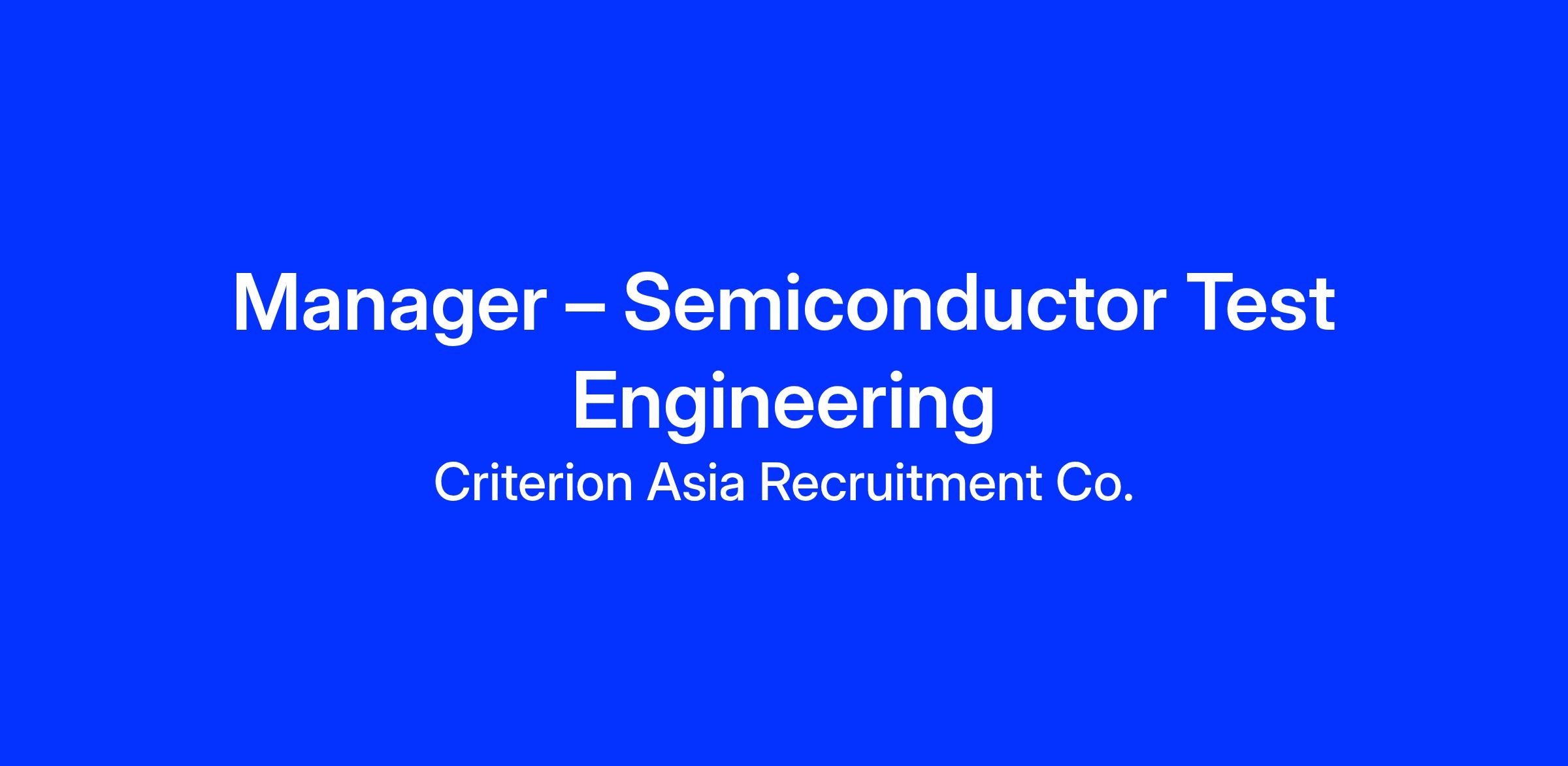 - Bachelorβs or Masterβs degree in Electrical/Electronic Engineering or a related field with 7+ years of progressive experience in Product/Test Engineering within the semiconductor industry.
