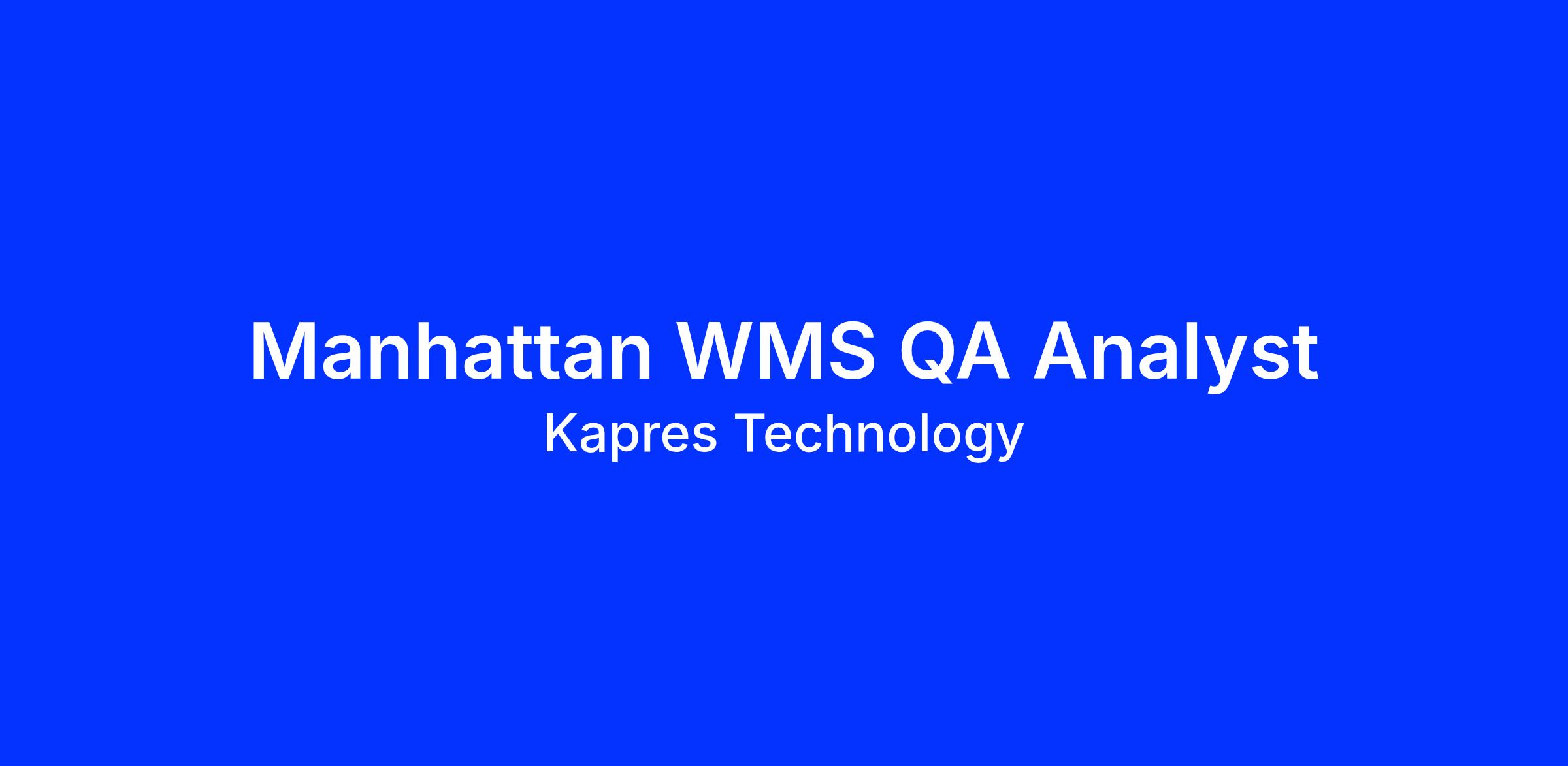 At Kapres Technology, we are looking for a Manhattan WMS QA Analyst to work for a multinational client, a leader in the logistics sector.