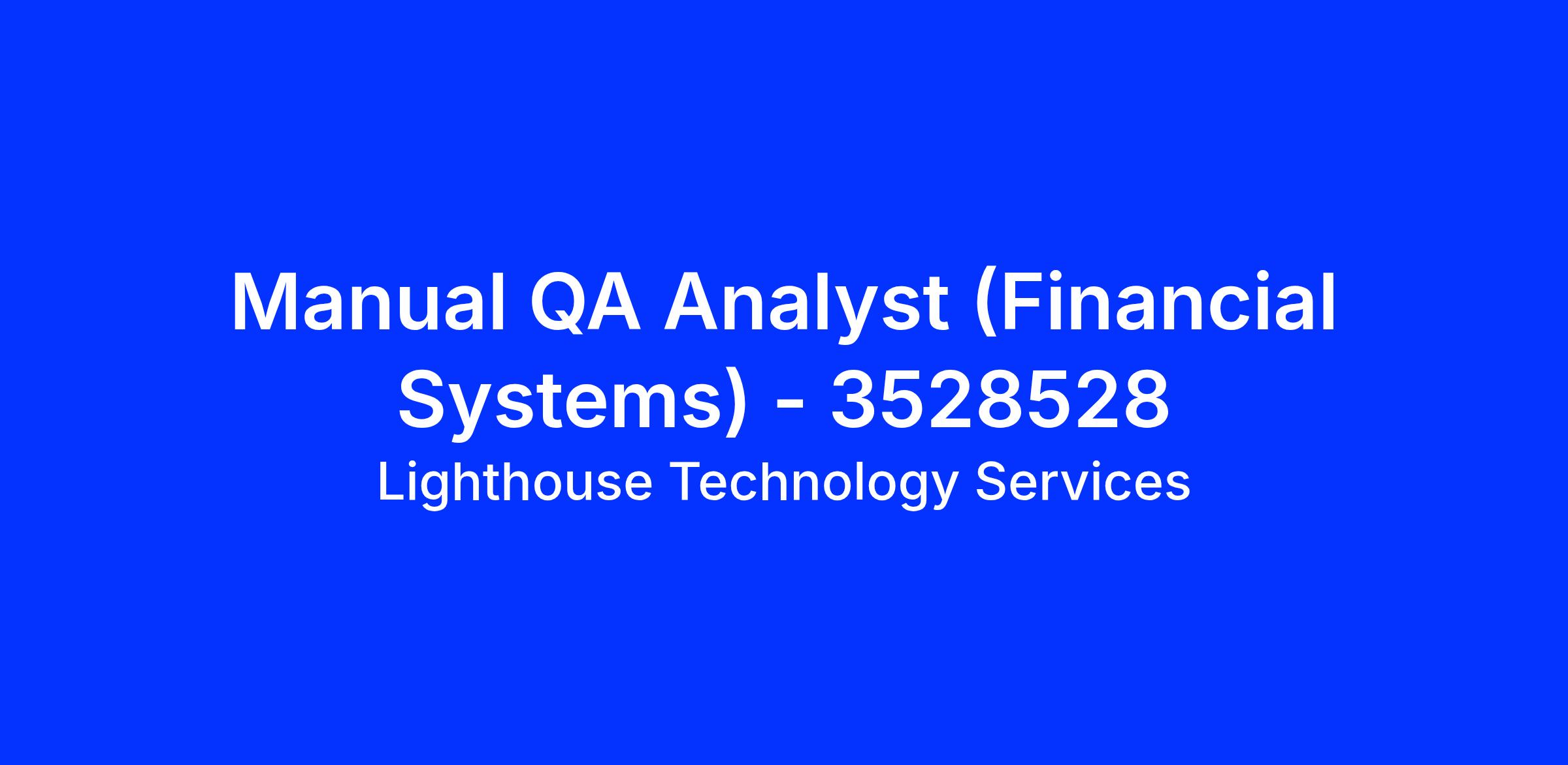 Lighthouse Technology Services is partnering with our client to fill their Manual QA Analyst (Financial Systems) position! This is a 12+ month contract opportunity and will be onsite in Buffalo, NY. This role will be a W2 employee of Lighthouse Technology Services.