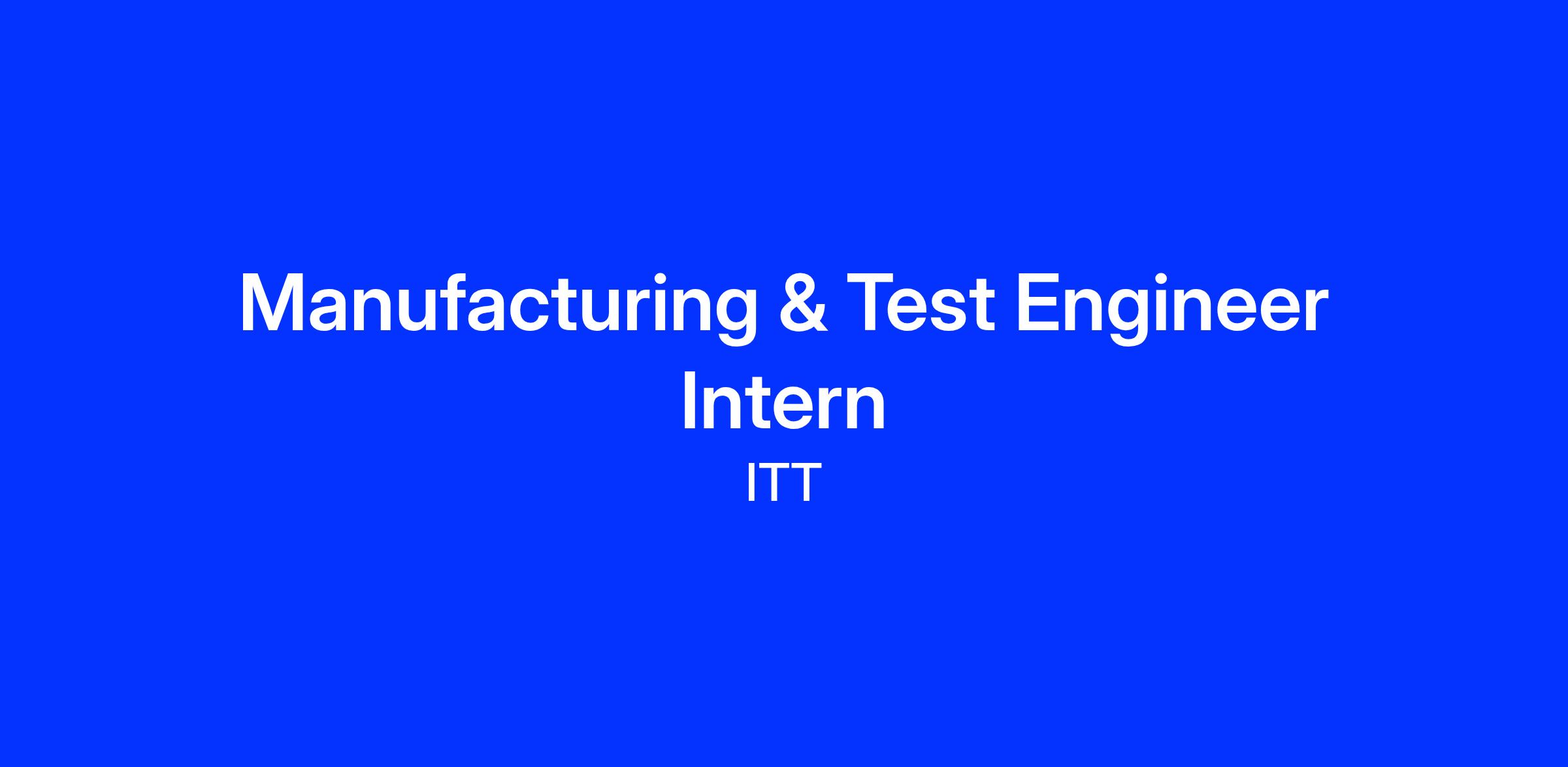 ITT Aerospace Controls offers a best-in-class internship experience designed to immerse students in the aerospace industry. As a Manufacturing & Test Engineer Intern, youβll gain hands-on experience with cutting-edge technologies and real-world projects that contribute to the innovation of fluid motion control and environmental control system solutions used in aerospace applications.