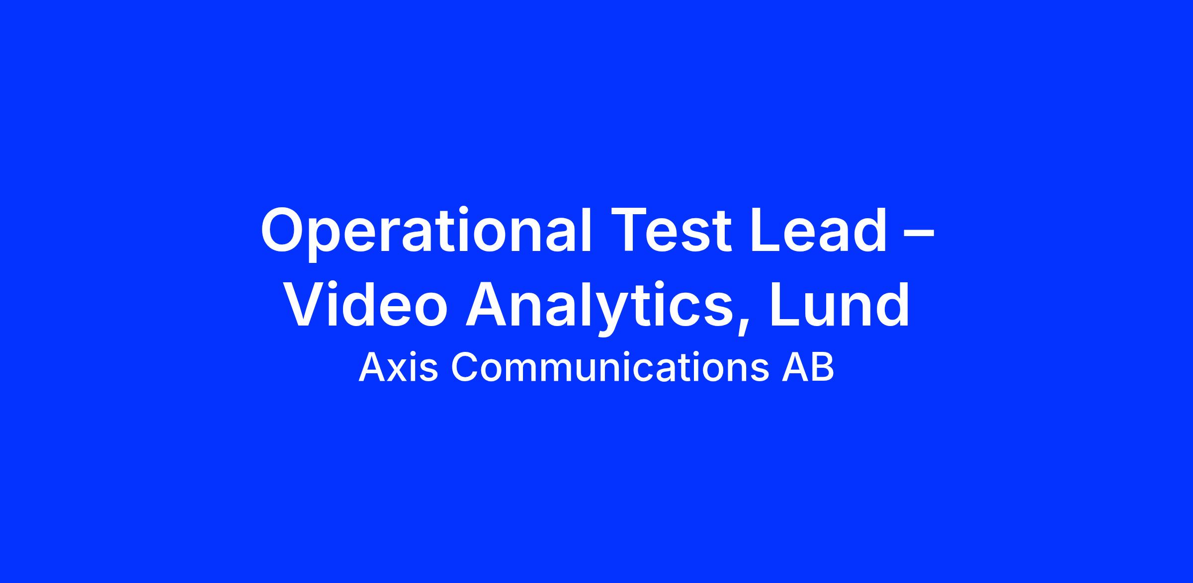 Are you a natural leader with a passion for driving quality in cutting-edge technology - while staying hands-on with complex systems? Do you thrive in guiding a team while remaining deeply involved in end-to-end testing, particularly within computer vision and video analytics? If you enjoy empowering others, solving challenging technical problems yourself, and bringing clarity to uncertainty, weโd love to hear from you. Lead our innovative Solution Test Team in Lund as an Operative Test Lead!
