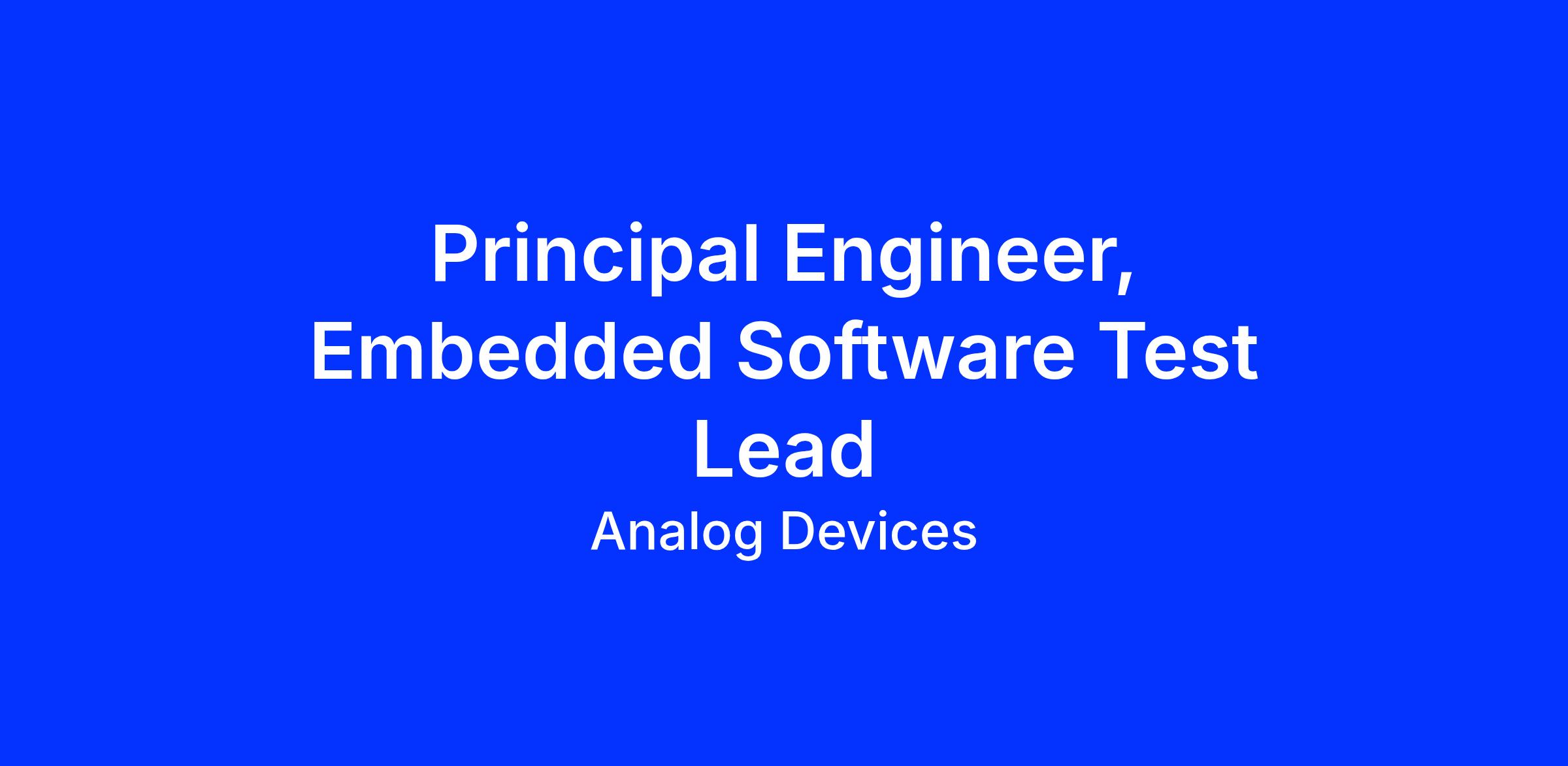 Principal Engineer, Embedded Software Test Lead