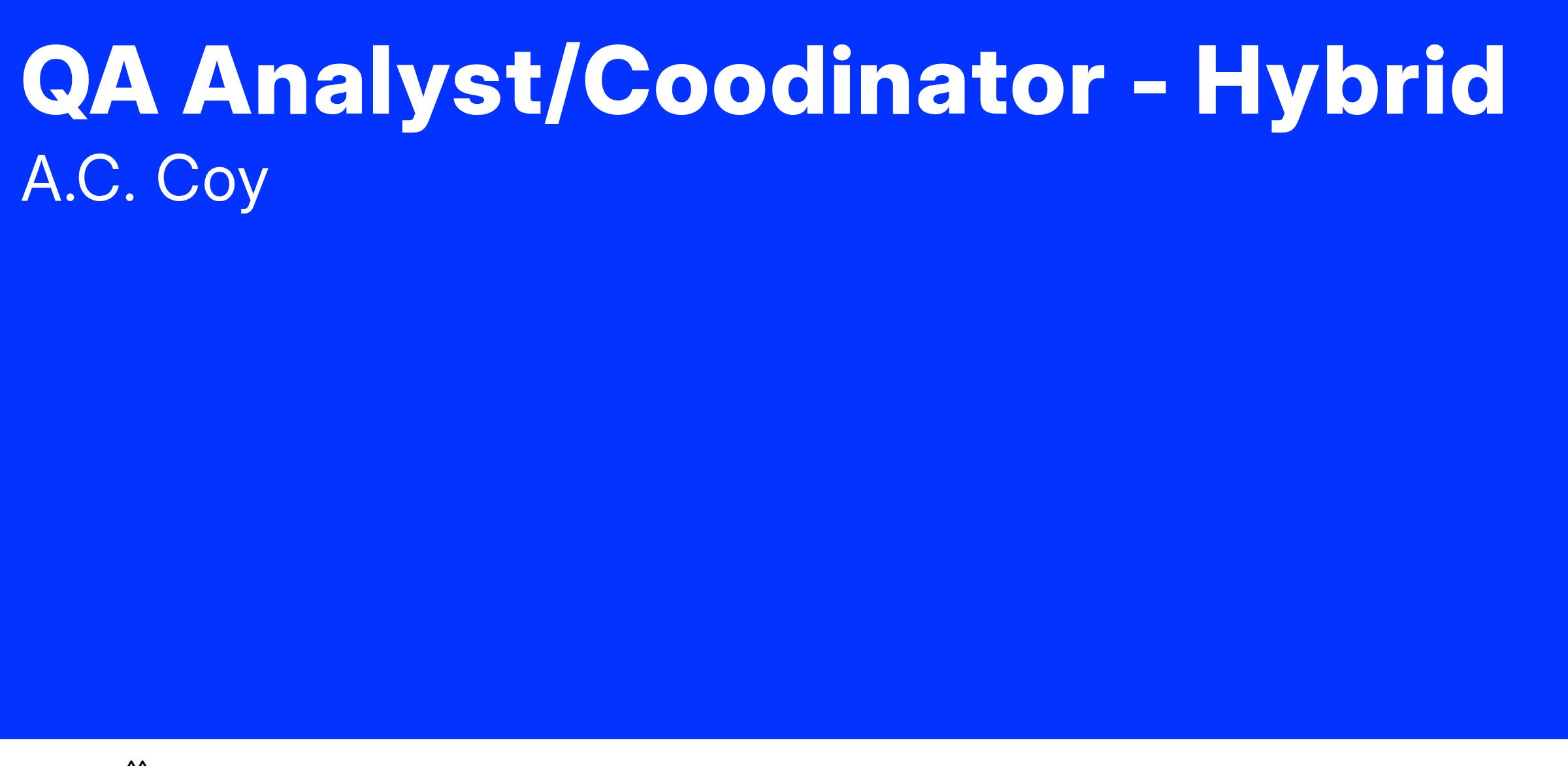 The A.C.Coy company has an immediate opening for a QA Analyst/Coordinator.Β Ideal candidates must have 5+ years of experience troubleshooting and diagnosing common software failure and faults and leading a variety of testing efforts.Β Understanding of automated testing is required.