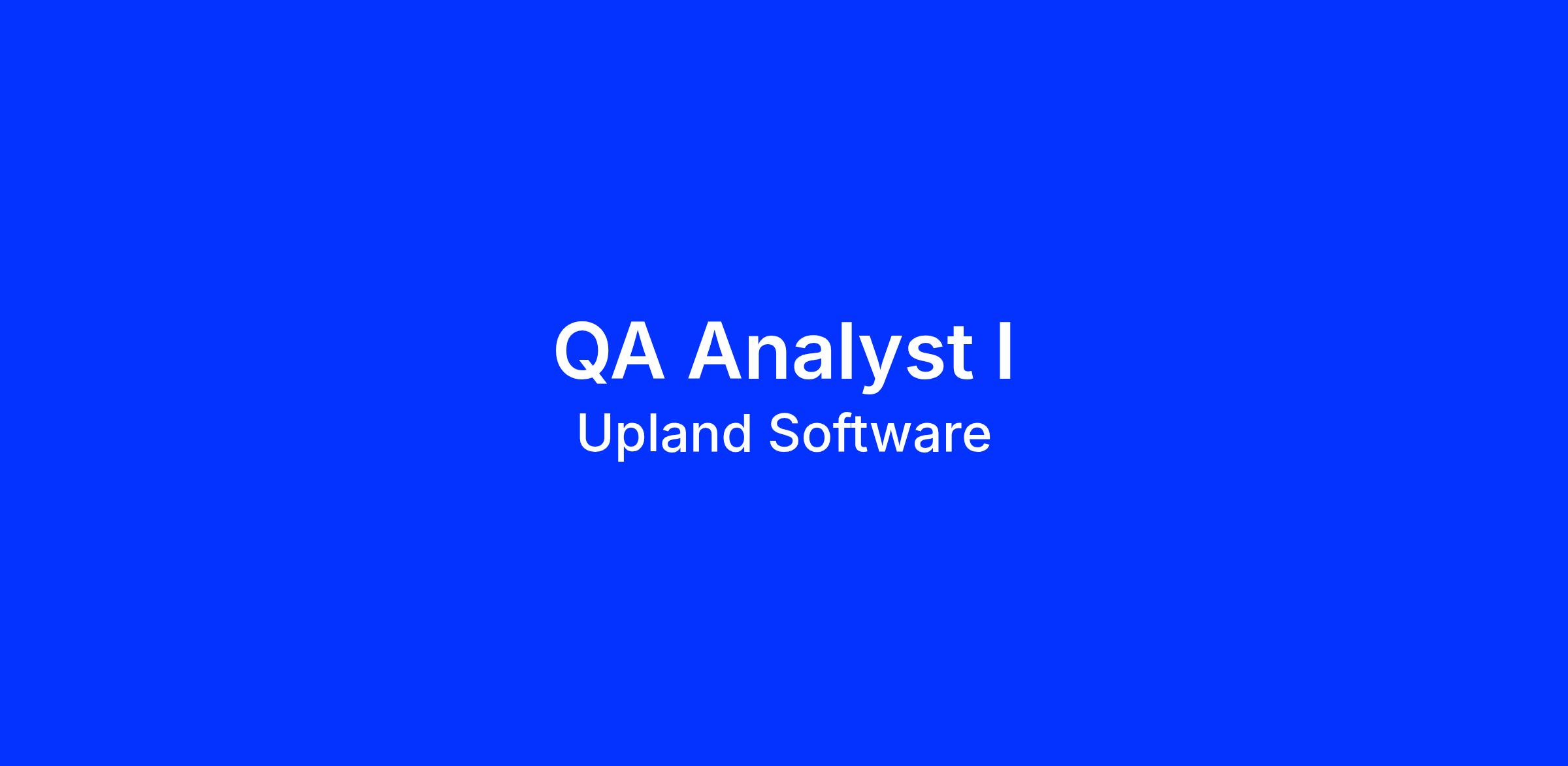 We are looking for an enthusiastic and dynamic individual with an overall experience of 1 โ 4 years to join Upland India as a QA Analyst I for our Upland Connectors product. The individual will work as a QA analyst primarily in manual testing.