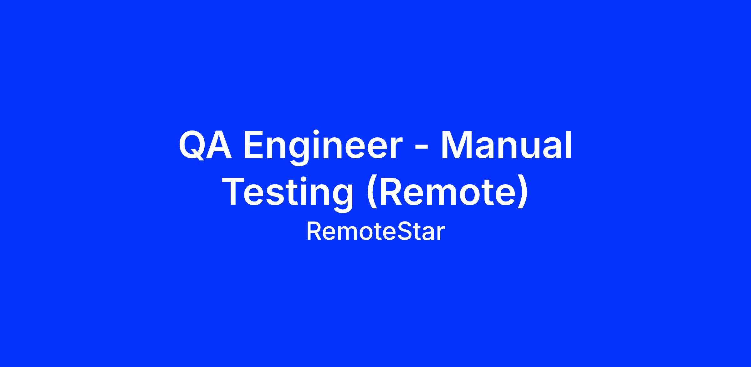 Job Title: QA Engineer(Manual Testing)