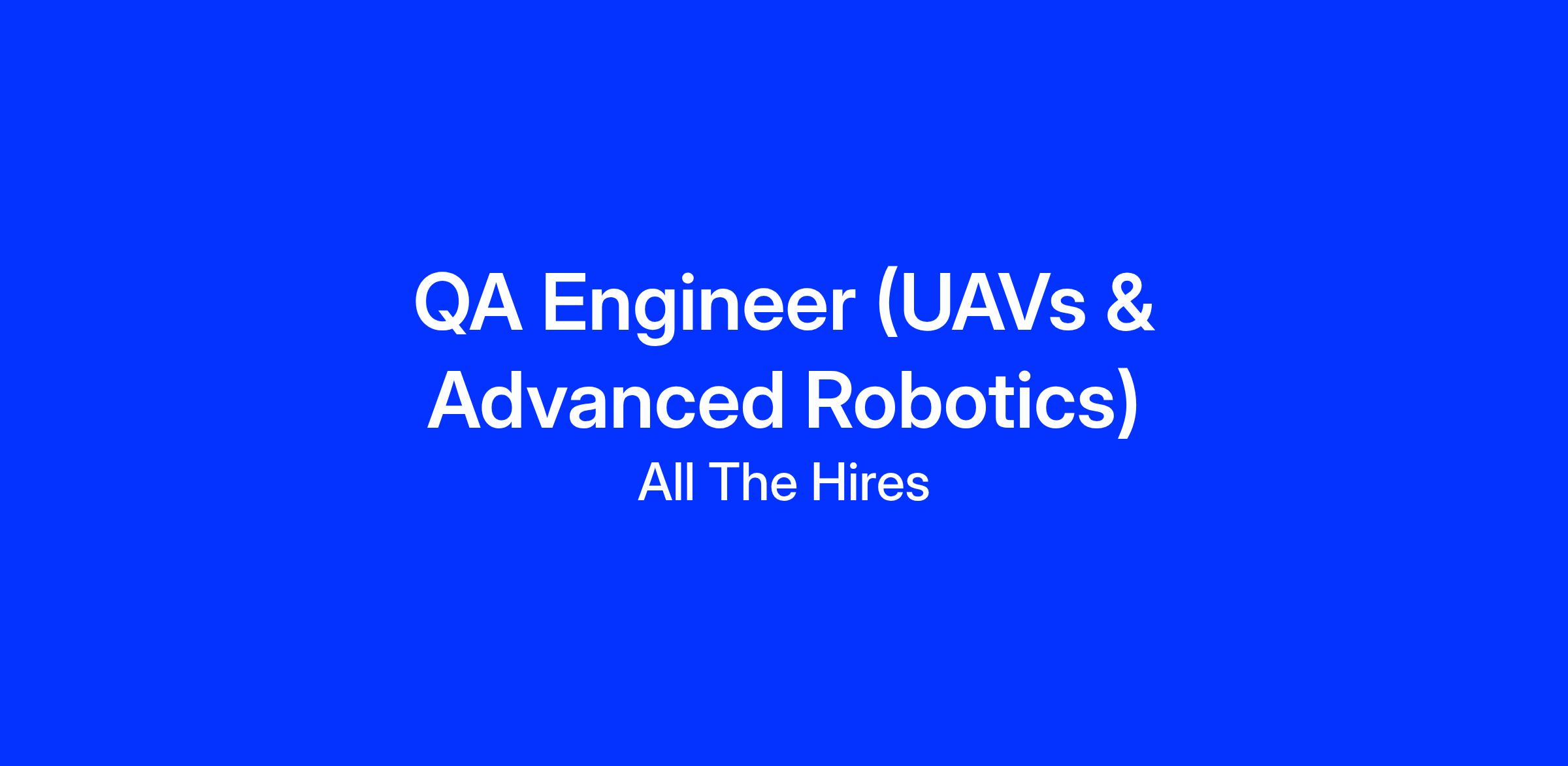 We're looking for a skilled QA Engineer who is 100% passionate about quality. You areΒ the critical link ensuring the unmanned aircraft, advanced camera gimbals, and ground control stations work together flawlessly in the real world.