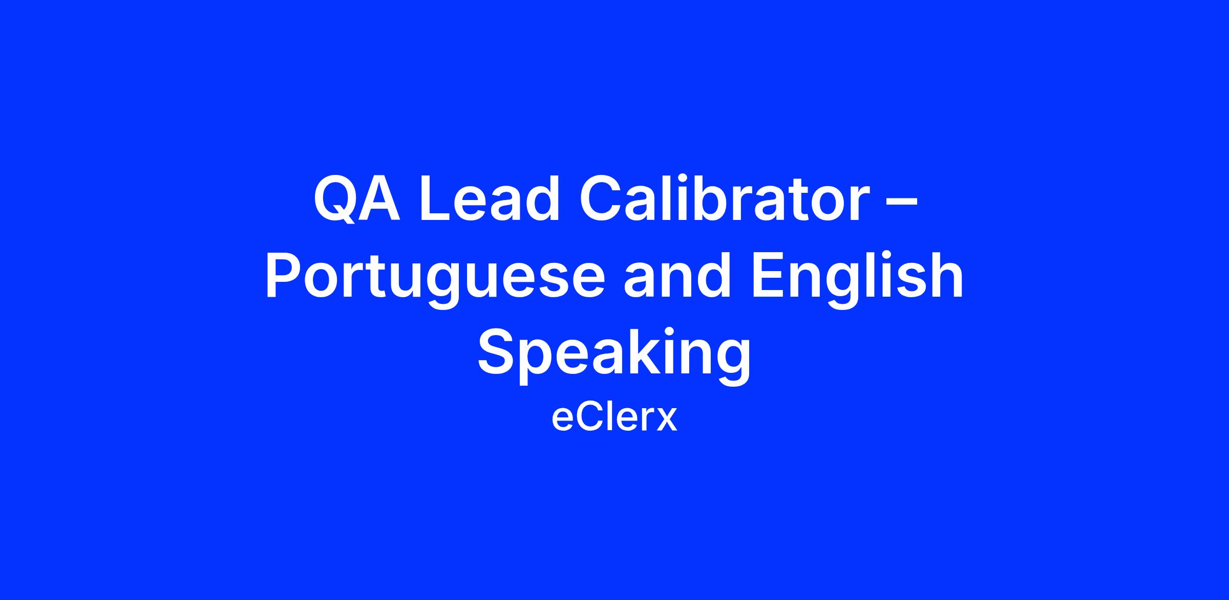QA Lead Calibrator- Call Center Β (Portuguese and English Speaking)Β