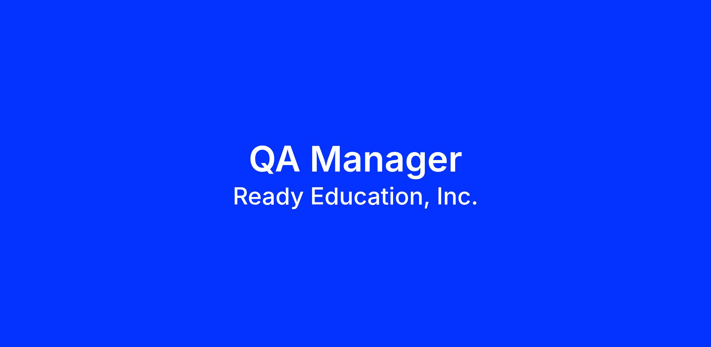 As QA Manager at Ready Education, you will lead and grow our quality assurance function across our student engagement platform. You'll set the overall QA strategy, mentor a team of QA engineers, and work closely with Engineering, Product, and Design to embed quality throughout the software development lifecycle. You'll balance hands-on involvement β from test design to automation β with the strategic oversight needed to scale QA practices as we grow globally.