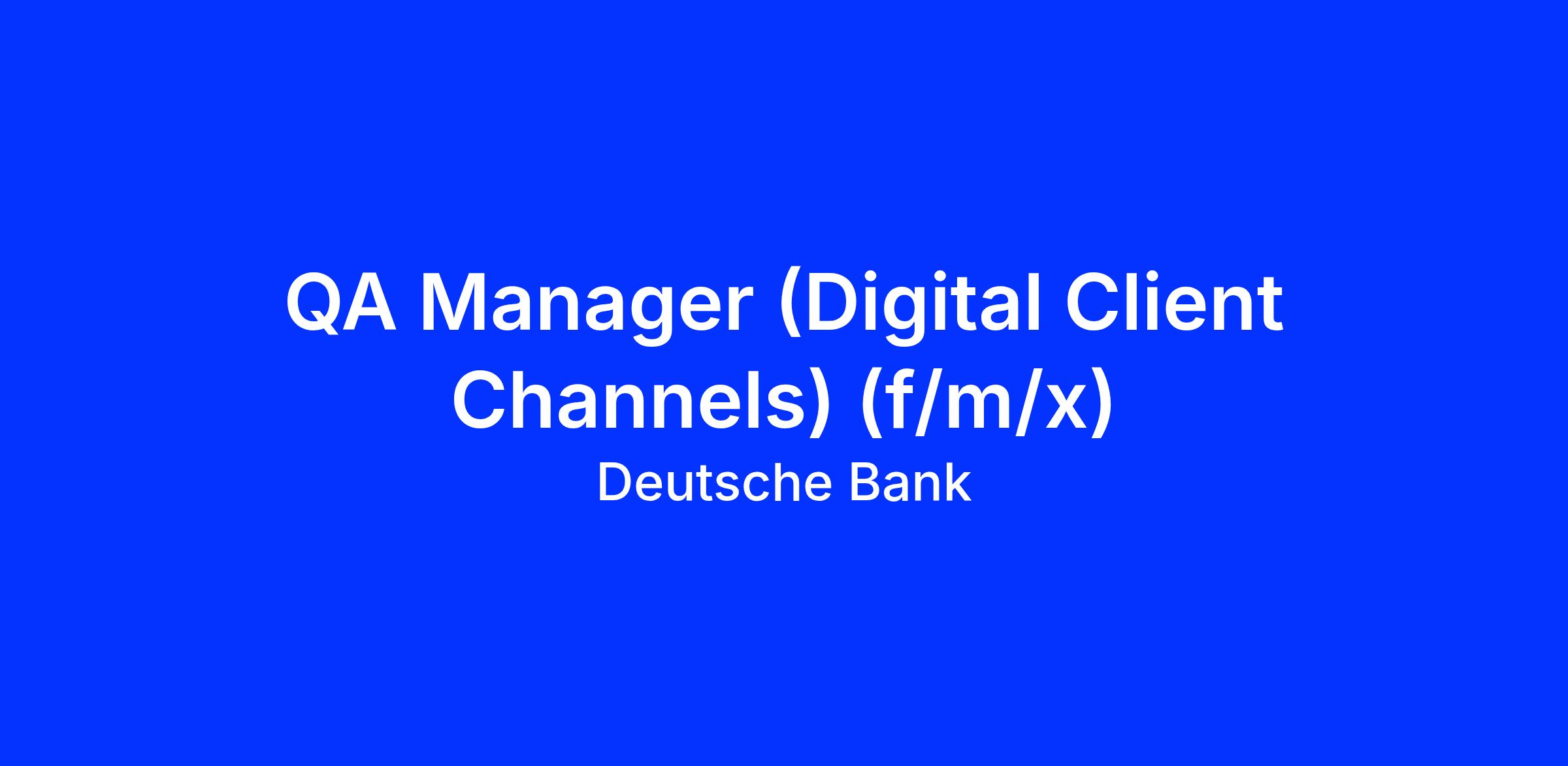 As a QA Manager (f/m/x) in the Digital Client Channels tribe, you will define and drive our quality strategy for Online Banking, Mobile Banking (iOS & Android), BackendโforโFrontend services, and backend APIs.