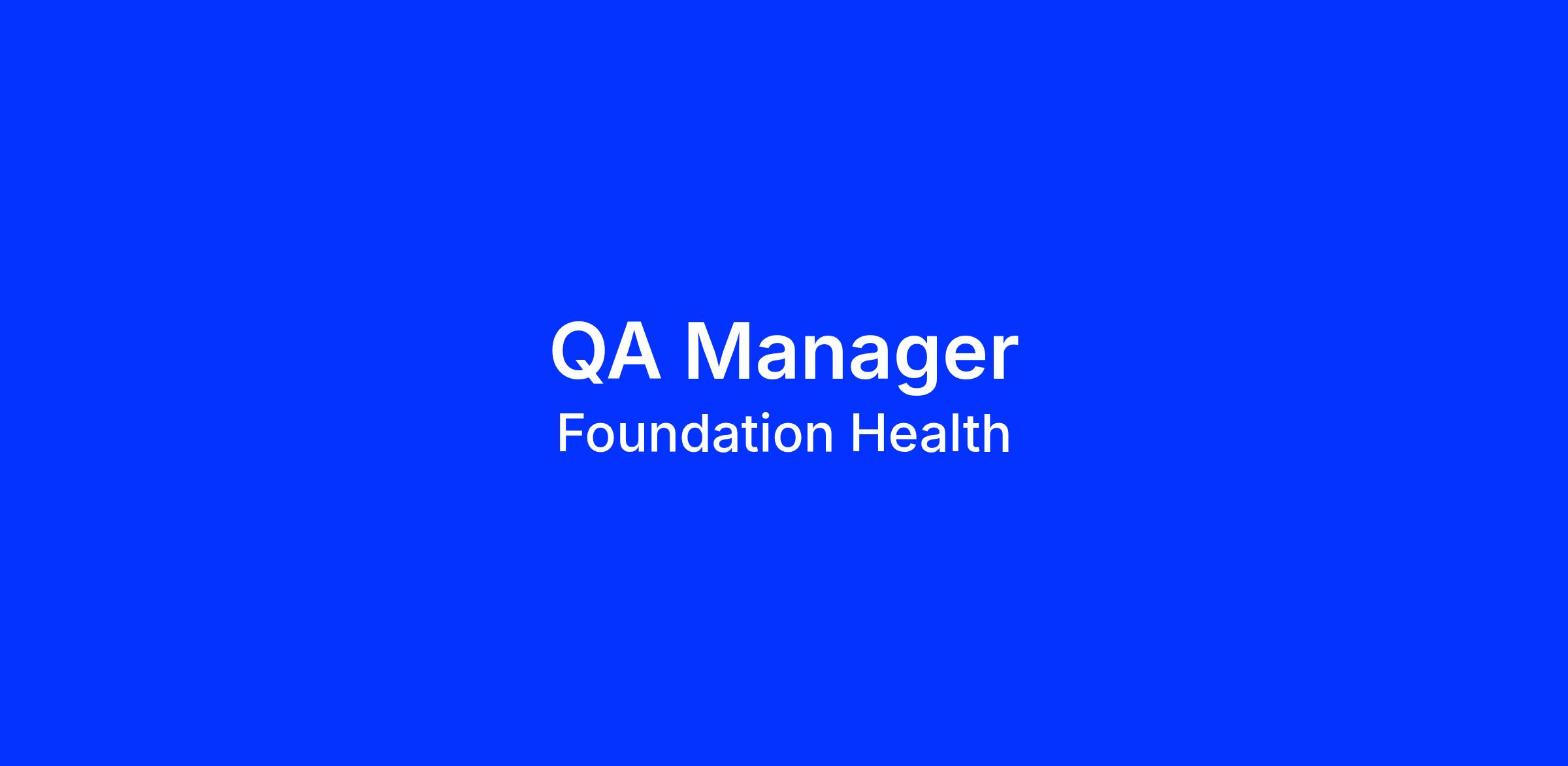 Weβre looking for a QA Manager to own quality across the Foundation Health platform and lead our QA organisation as we scale. This role is accountable for quality strategy, UAT, release readiness and the ongoing development of our QA function.