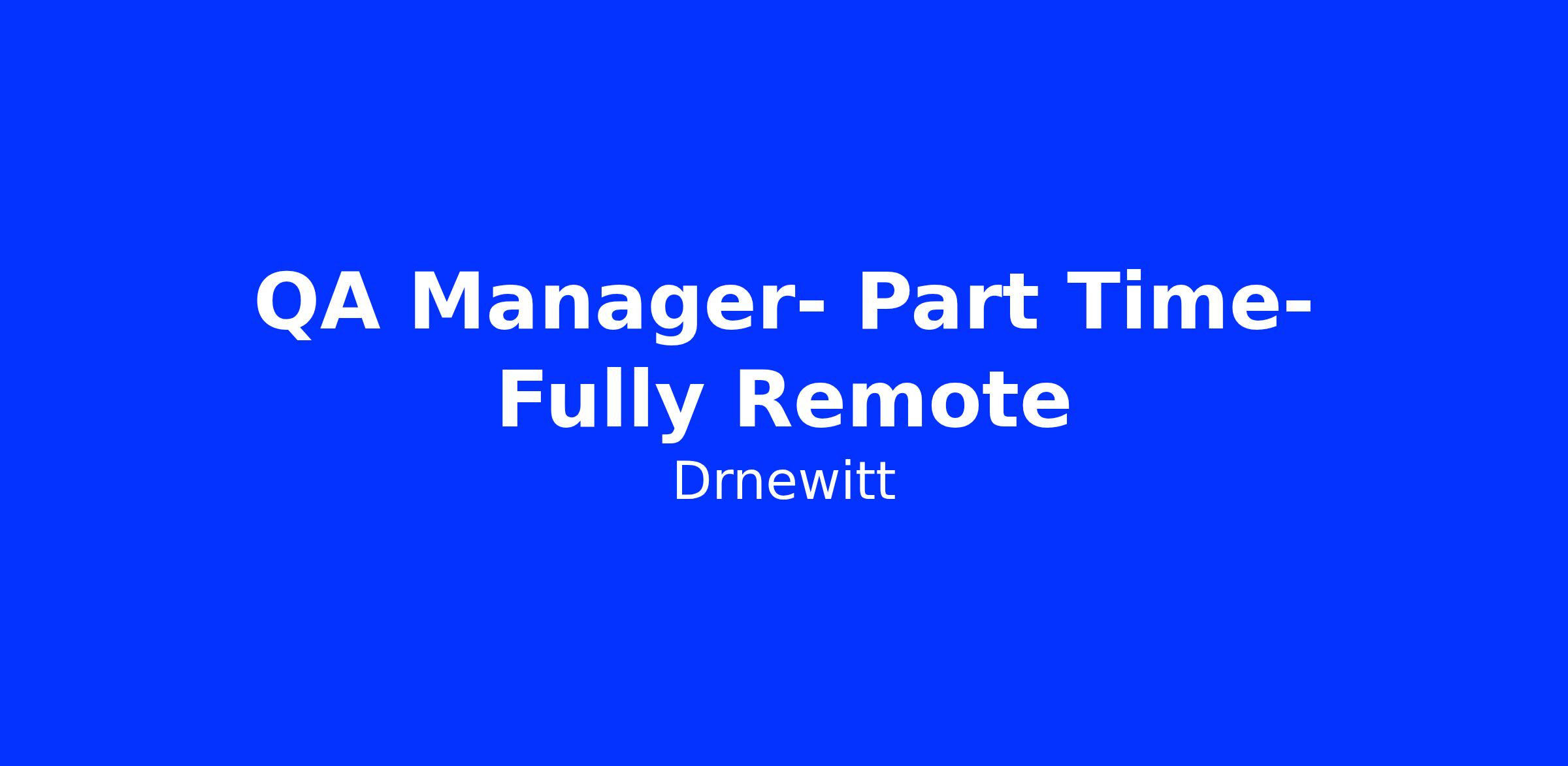 Food Quality Manager - Part Time 30 hours- Fully Remote