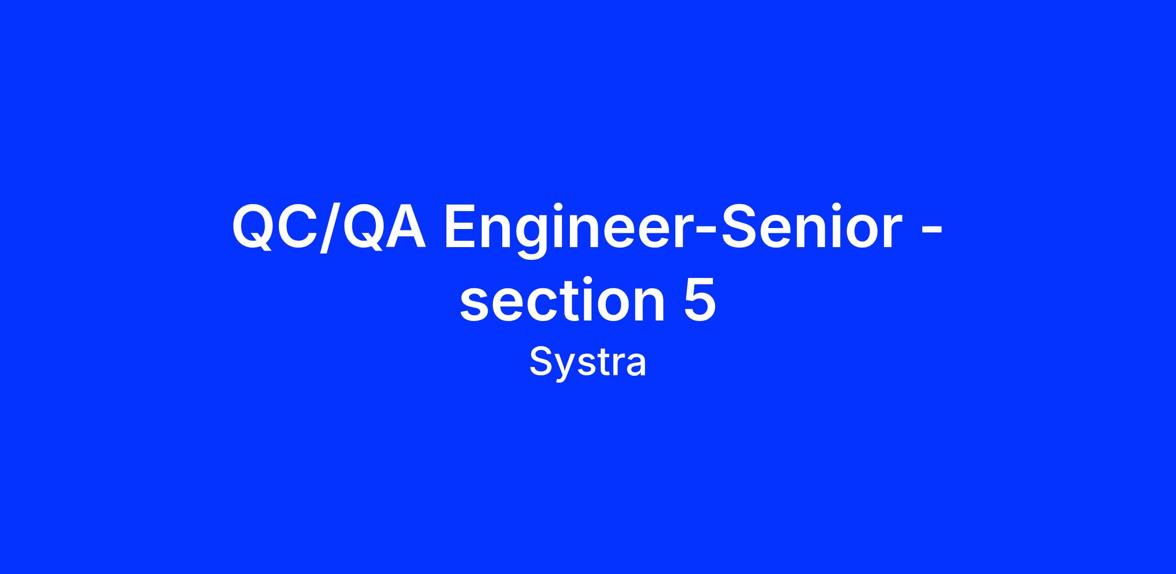 Senior QC/QA Engineer Skills should be including but not limited to: -