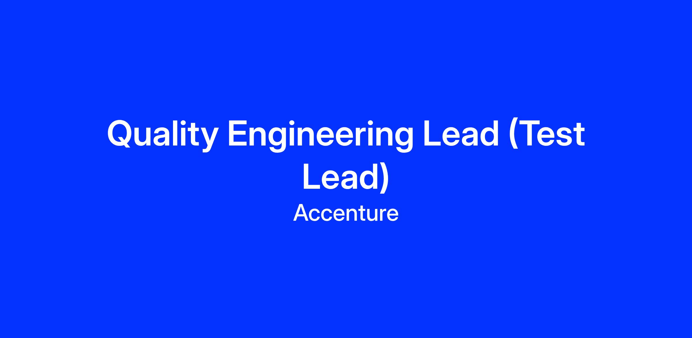 Project Role : Quality Engineering Lead (Test Lead)