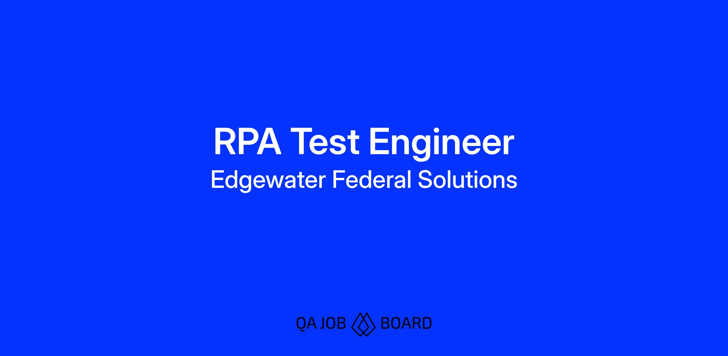 Edgewater Federal Solutions is seeking a a RPA Test Engineer to support the IT program at a major national laboratory.
