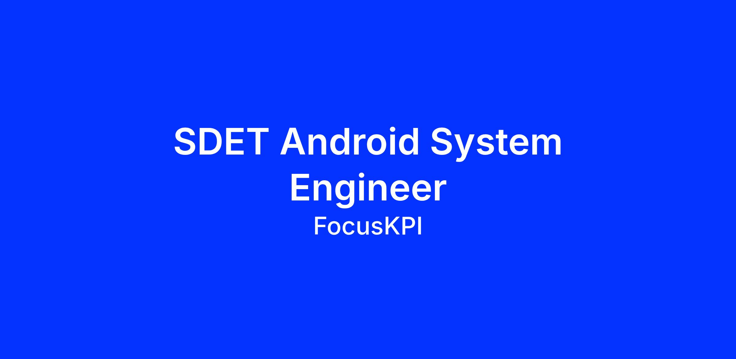 FocusKPI is looking for anΒ SDET Android System Engineer or Android System Software Development Engineer in Test (SDET)Β to join one of our clients, a high-tech SaaS company.