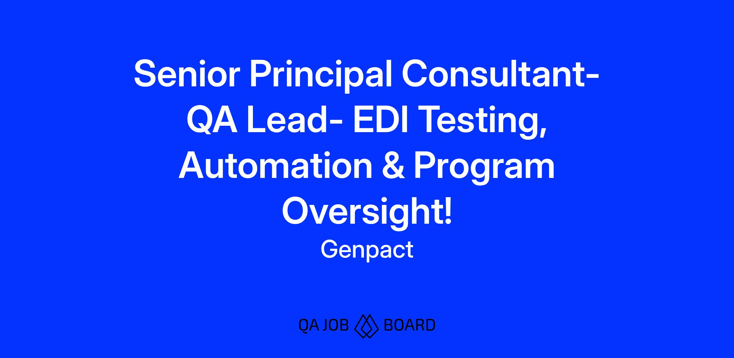 Inviting applications for the role of Senior Principal Consultant, QA Lead- EDI Testing, Automation & Program Oversight!