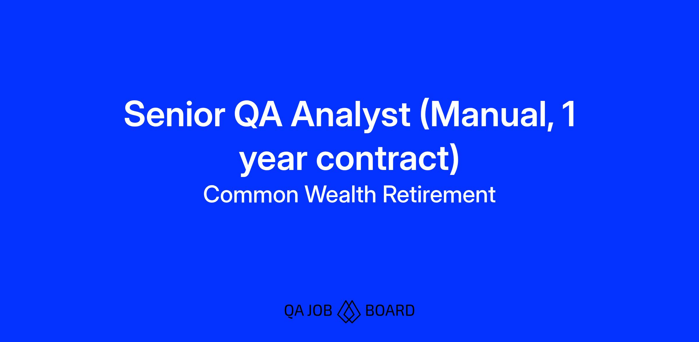 We are looking for an experienced QA Analyst to join Common Wealth’s engineering team. You will play a key role in launching the technology that powers our retirement platform to help us drive toward a future where every Canadian can achieve financial security in retirement.