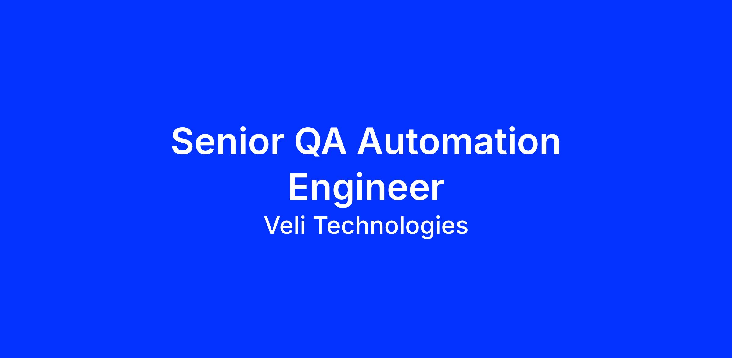 SeniorΒ QA Automation EngineerΒ to join ourΒ VeliTech team.Β