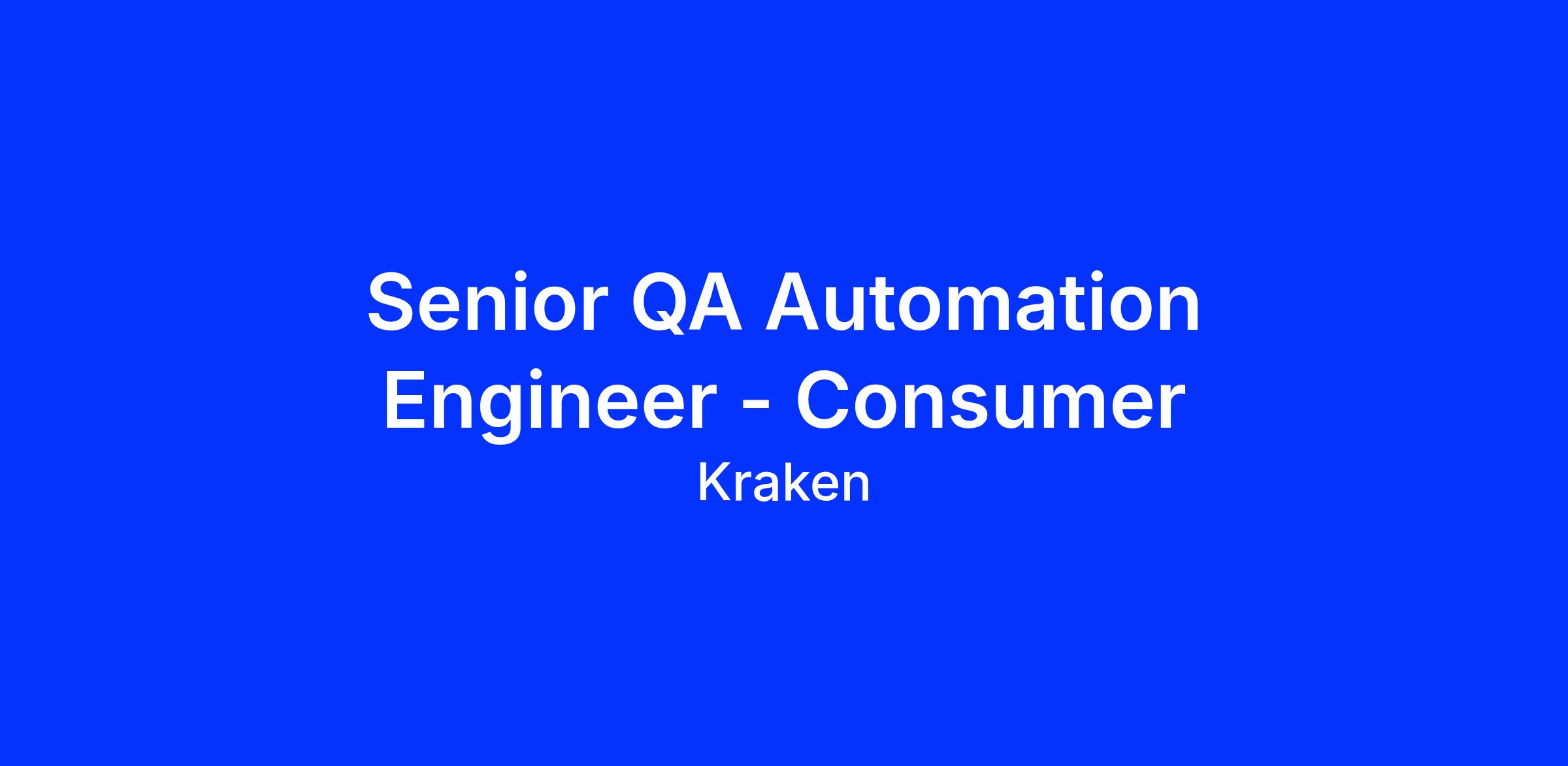 We are currently seeking an experienced QA Automation Engineer to join our growing Consumer team. The Consumer team at Kraken focuses on building applications that expose Krakenβs product offering to the mass market. Trying to onboard the next 100 million people to the benefits of crypto.