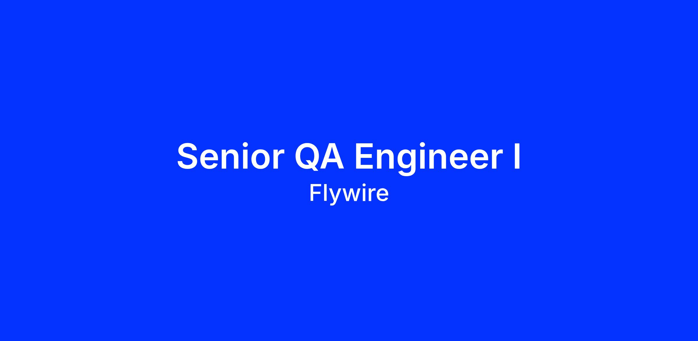 We, at Flywire, are looking for an experienced Sr. QA Engineer I ideally with a background in FinTech The Quality Assurance team at Flywire is a group of engineers dedicated to improving the productivity of engineering and quality of services in Flywire. We focus on adding value to Flywireβs engineering by providing a diverse array of sustainable tools and processes. Our scope of service to other teams does not just involve writing tests because our focus is on facilitating tools and processes to boost productivity. Thus, a commitment to collaborative problem solving, design, and building quality products is essential.