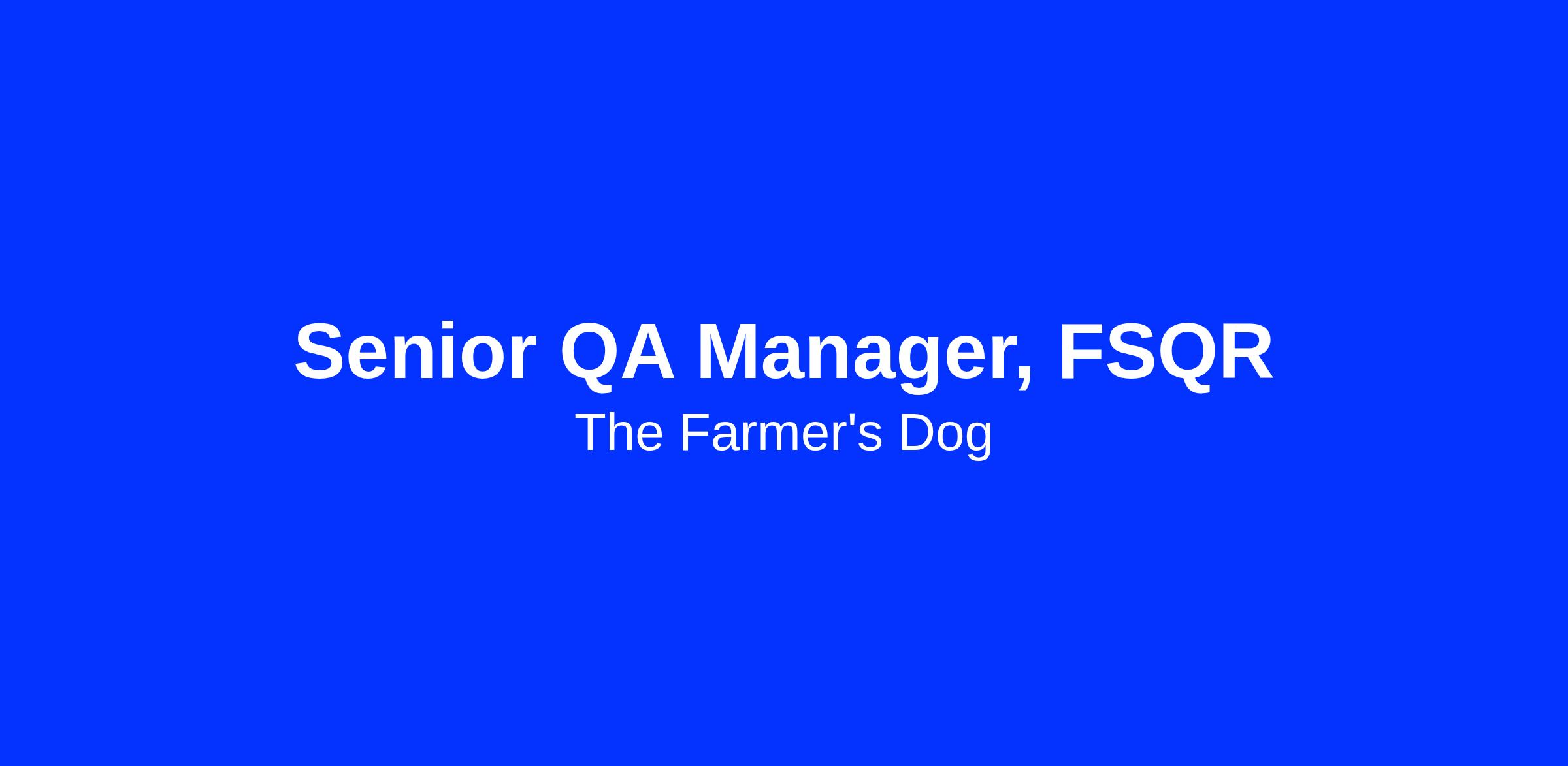 The Farmer's Dog, Inc. is an equal employment opportunity employer and does not discriminate in hiring on the basis of sex, gender identity, sexual orientation, race, color, religion, creed, national origin, physical or mental disability, protected veteran status or any other legally protected characteristic or status. For more information, please visit Know Your Rights.
