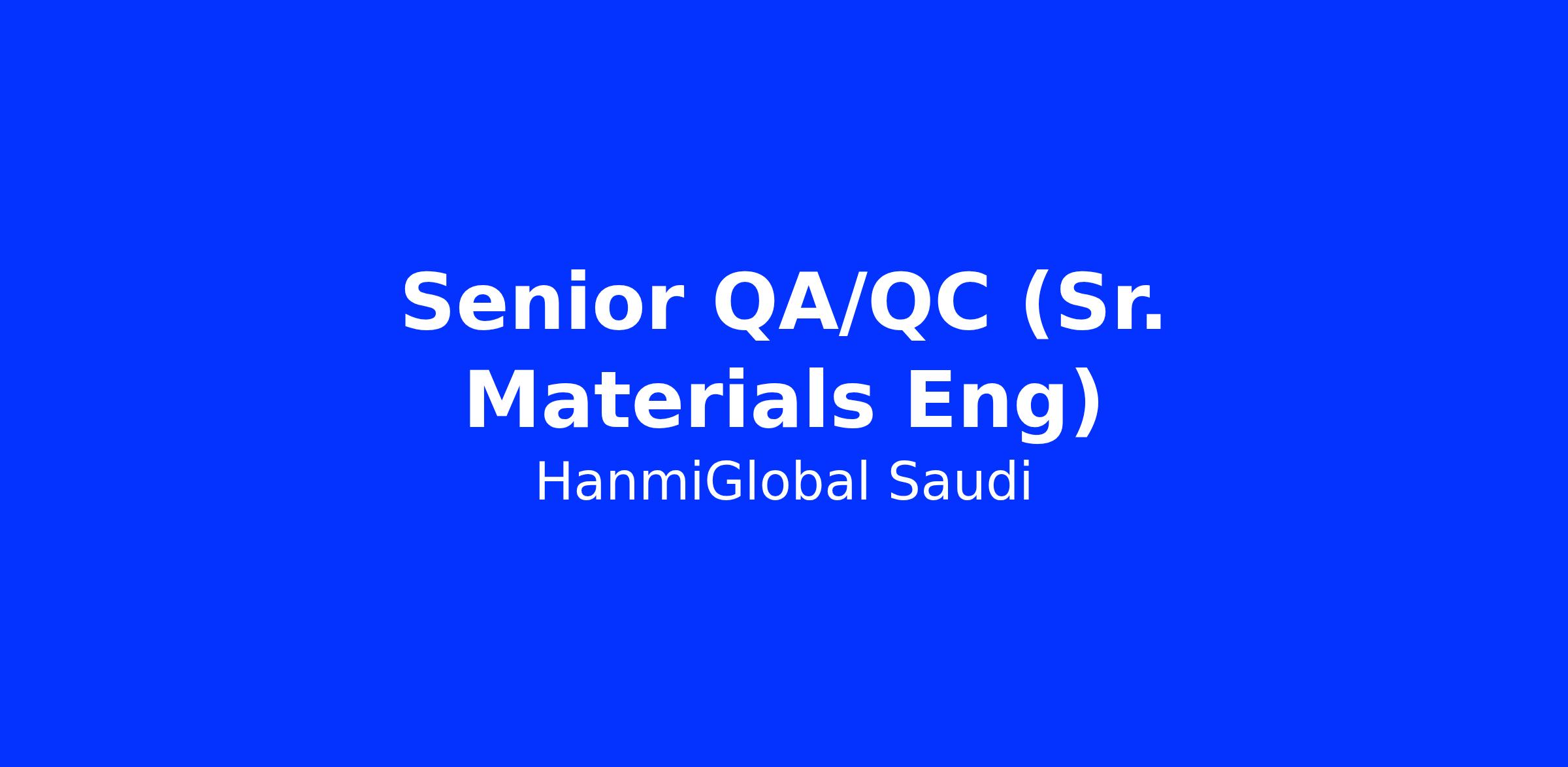 DescriptionHanmiGlobal Saudi is looking for an experienced Senior QA/QC (Senior Materials Engineer) to join our team. In this role, you will be responsible for overseeing the quality assurance and quality control processes for all materials used in construction projects. Your expertise will ensure that all materials meet industry standards and project specifications, contributing significantly to the overall success of our projects. The Senior QA/QC will develop and implement quality control plans, conduct site inspections, and collaborate with project teams to address any materials-related issues promptly.