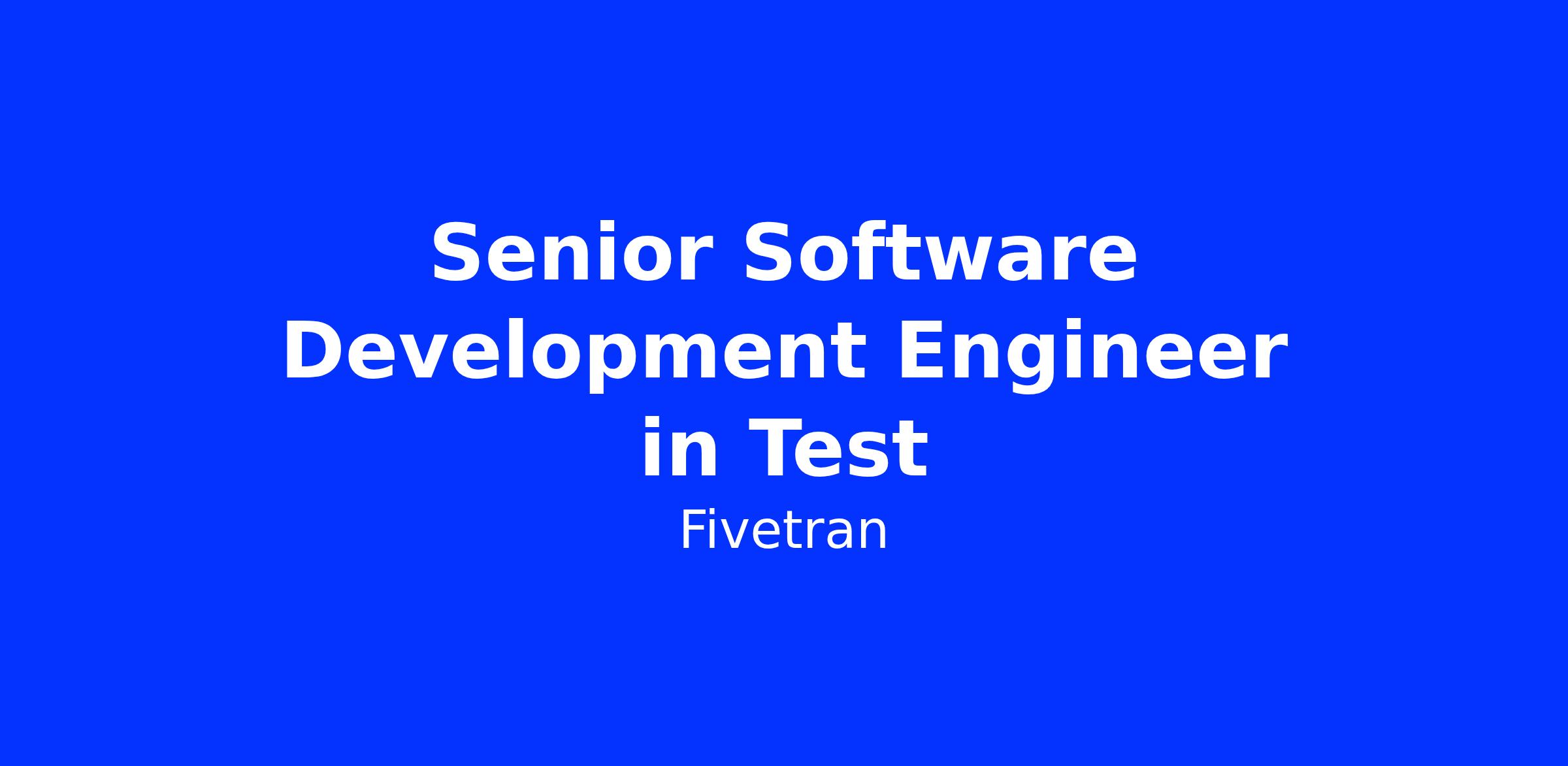 Weβre looking for a Senior Software Development Engineer in Test with extensive industry experience to define and execute the design, development, and maintenance of Fivetranβs test automation tools and framework using reliable and scalable techniques.