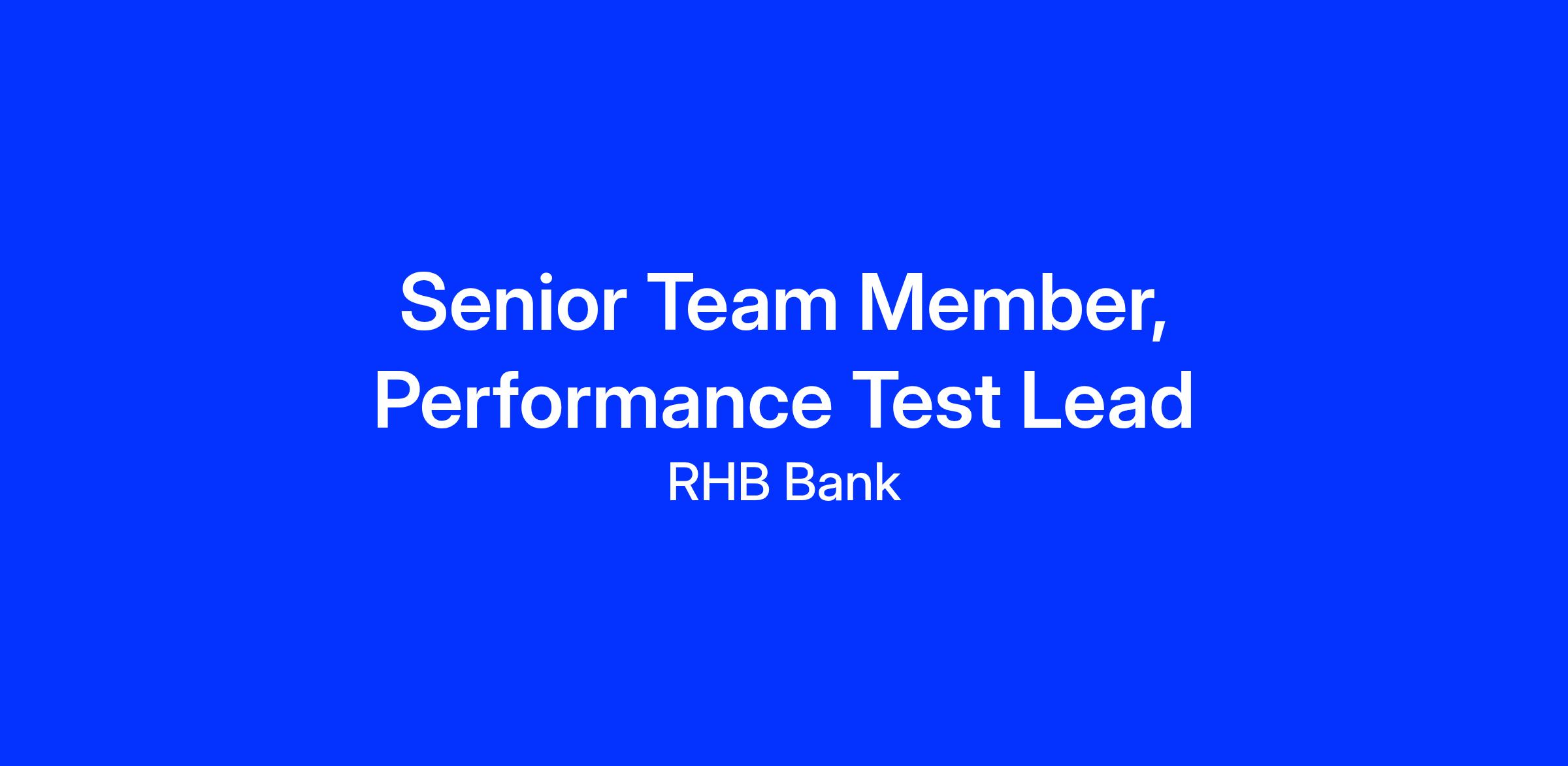 We are seeking a highly skilled Senior Team Member, Test Automation & Performance Test Lead to join our team at RHB Bank. This role focuses on designing, executing, and managing performance and automation testing to ensure enterprise-class applications meet performance, scalability, and reliability standards. You will play a key role in strengthening application quality while supporting business and IT objectives.