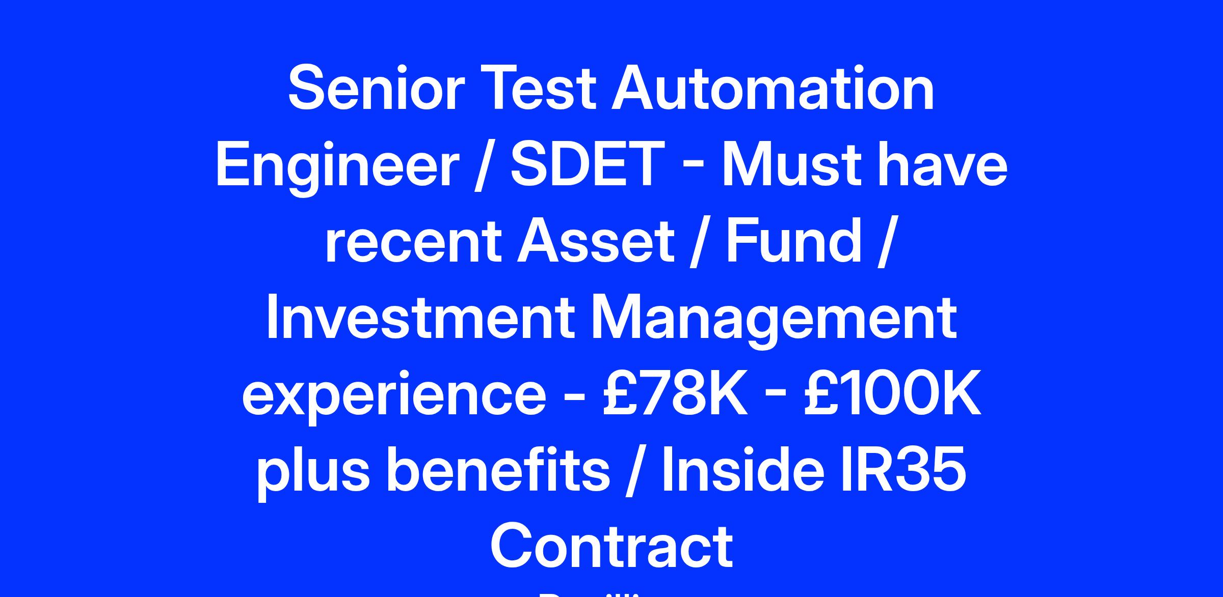 If youβre a senior-level Test Automation Engineer or SDET with a background in asset or investment management, and youβre ready to shape next-gen testing frameworks, weβd love to hear from you.