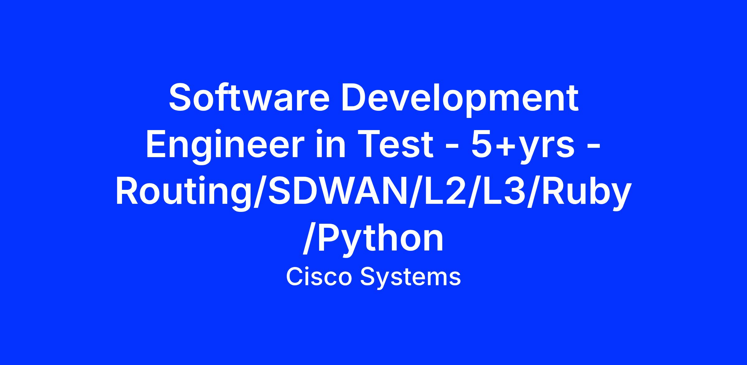 5+ years of experience in Testing routing or SD-WAN domain with at least 3+ years of Automation/Development experience.