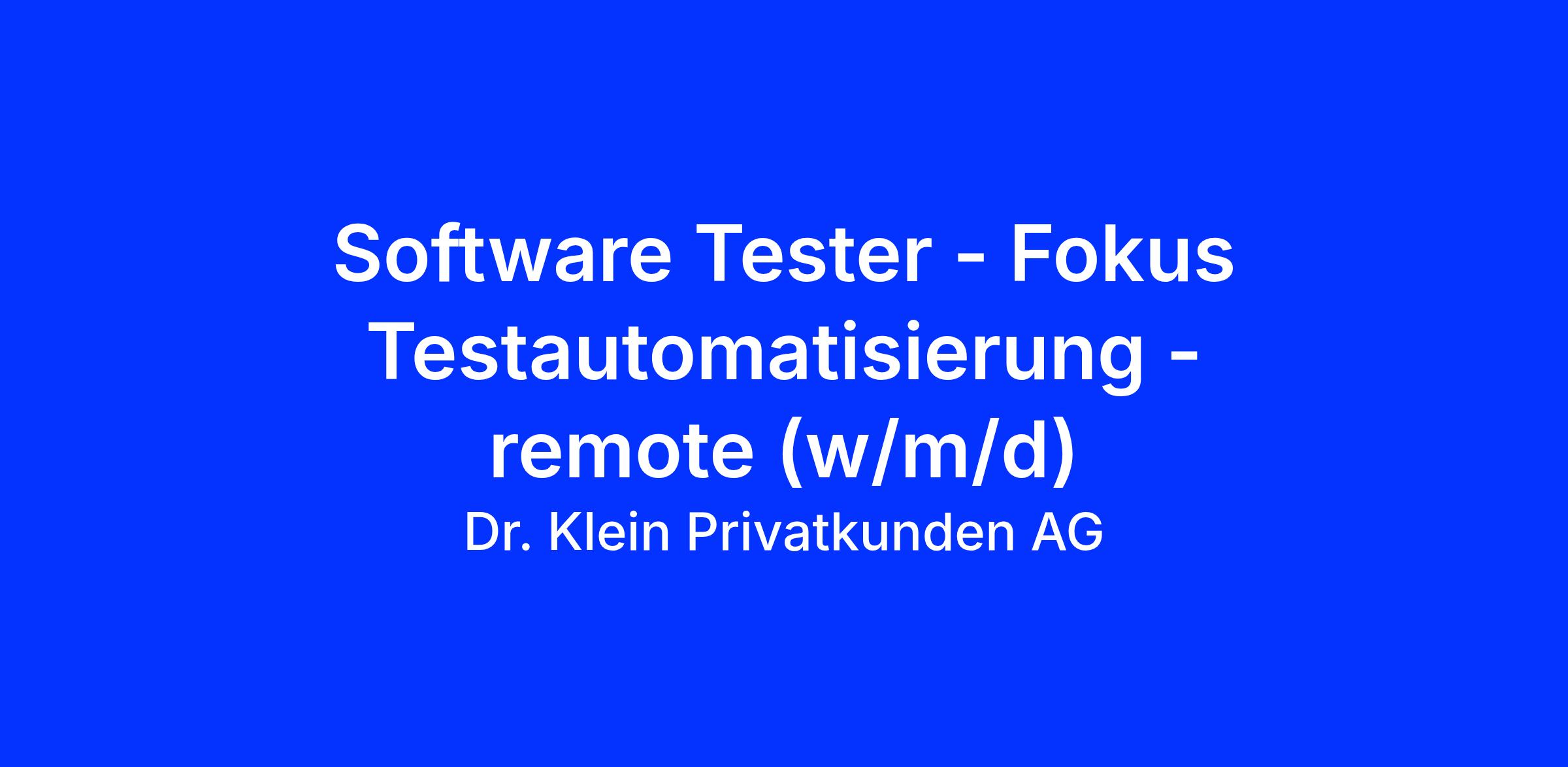Software Tester - Fokus Testautomatisierung - remote (w/m/d)