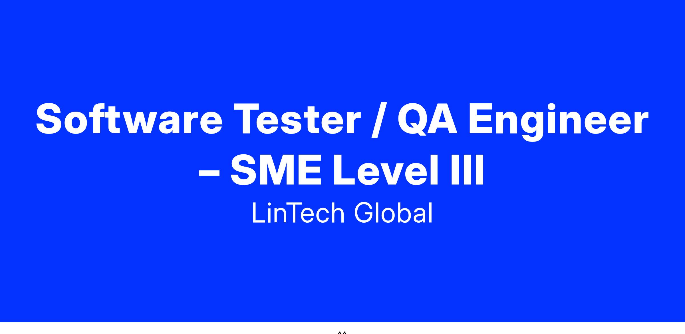 Job Title: Software Tester / QA Engineer - SME Level III